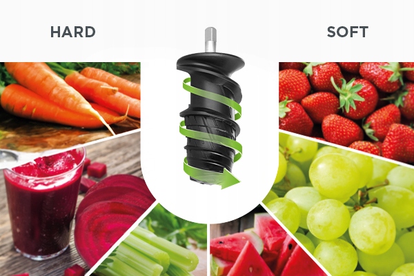Метод повільної соковижималки в поєднанні з горизонтальним положенням хвостовика забезпечує висока врожайність. Інноваційна конструкція обертового шнека ефективно подрібнює всі види фруктів і овочів. З соковижималкою LO3000 ви отримаєте максимум соку з високим вмістом вітамінів і поживних речовин і при цьому мінімальну кількість відходів. Але навіть цим можна смачно вживати. .