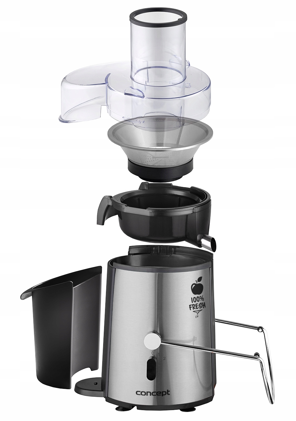 Вам не подобається проводити багато часу на кухні? Вам хочеться щодня пити здоровий свіжий фруктовий сік? У Concept є рішення для вас - соковижималка з широким отвором 72 мм. Вам більше не потрібно витрачати час на нарізання фруктів на менші шматочки перед додаванням їх у соковижималку.