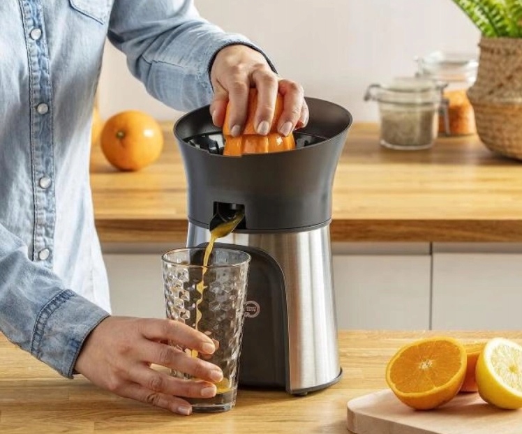За допомогою цієї практичної електричної соковижималки ви можете готувати свіжовичавлений сік з лимонів, мандаринів, апельсинів, грейпфрутів та інших фруктів. Сік підходить для різноманітних лимонадів, освіжаючих фруктових напоїв, чаїв і т. д. У набір входять 3 різнокольорові конуси, які легко розпізнати та використати, кожен з яких відповідає розміру та сорту цитрусових. Жовті конуси для лимонів, помаранчеві для мандаринів, мандаринів і апельсинів, рожеві для грейпфрутів тощо.
