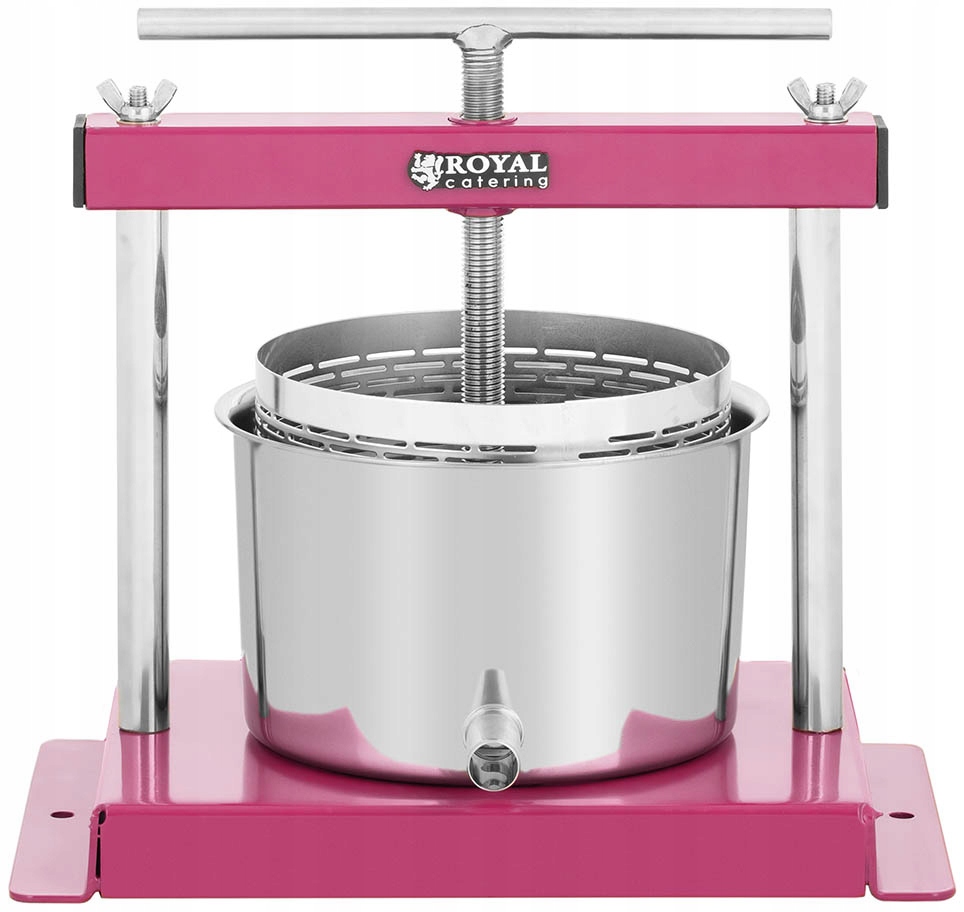 Код виробника: 10012856Фруктовий прес Royal Catering ідеально підходить для професійного віджимання соку з яблук, винограду, ягід та інших фруктів. Кошик для фруктів виготовлений з нержавіючої сталі, він міцний і гігієнічний. Шпиндельна конструкція дозволяє створити дуже високий тиск і повністю вичавити сік з фруктів. Ємність заливки - 3 л. Внизу є носик, який дозволяє наливати сік без втрат. Залізна основа має отвори для гвинтів для більшої стійкості. У набір входить 5 фільтр-пакетів.Характеристики продукту: