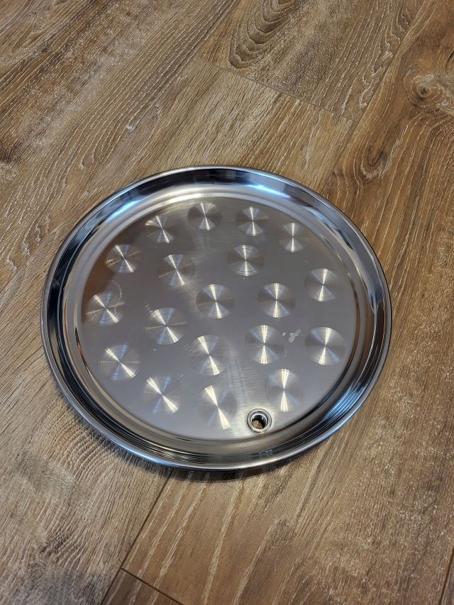 Кругла таця з кислотостійкої нержавіючої сталі з лійкою і кран