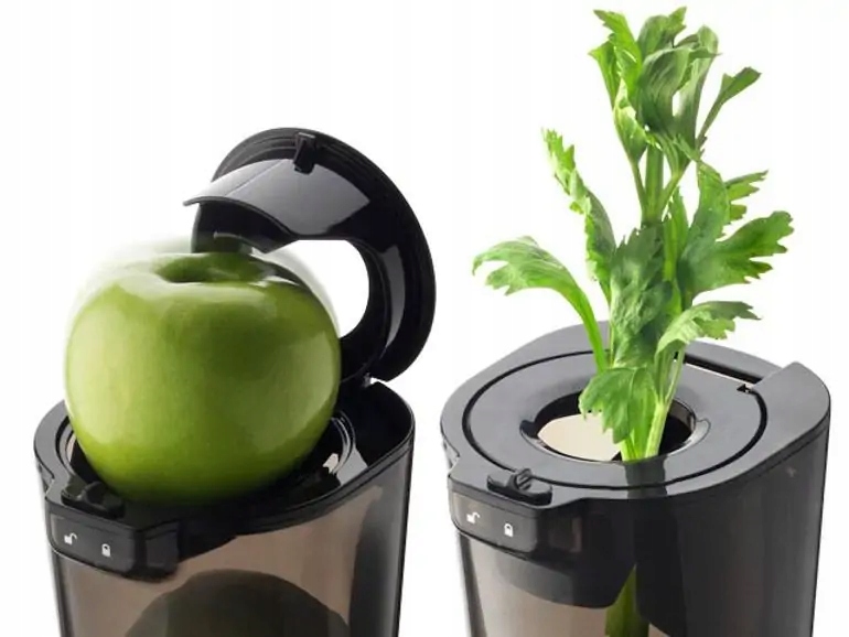 Вертикальні соковижималки Kuvings мають діаметр понад 8 см. Можна кинути в них цілі яблука або апельсини, не розрізаючи їх на дрібні шматочки. Після закриття кришки вхідний отвір ідеально підходить для додавання довгих інгредієнтів, таких як морква або цибуля-порей.
