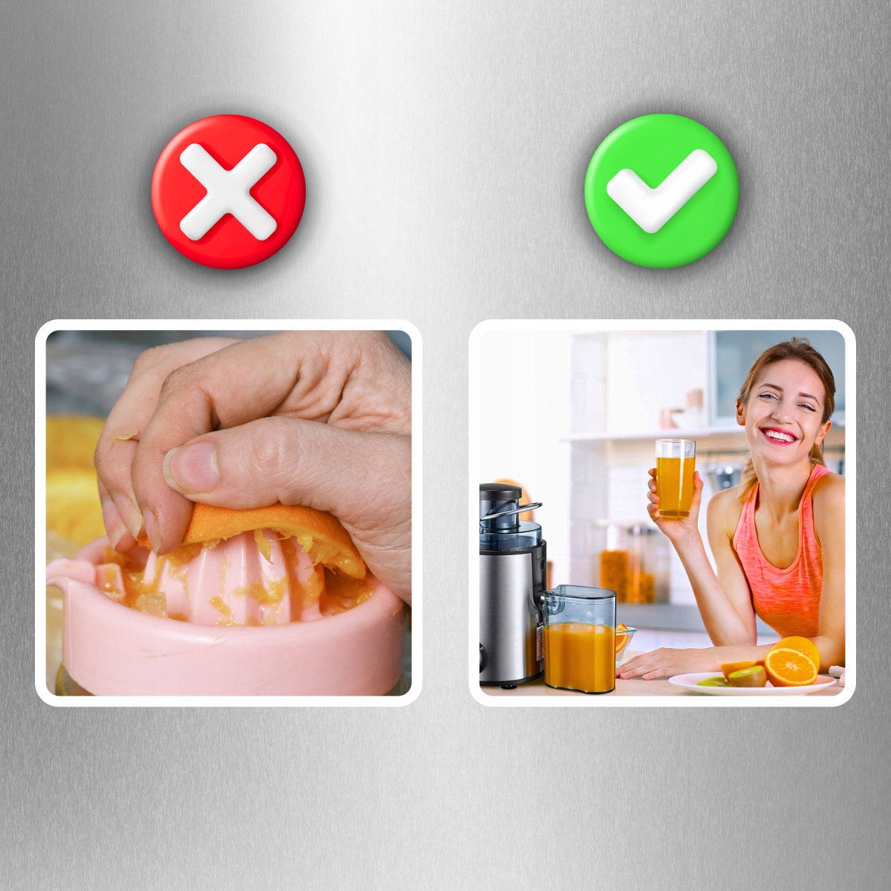 Пристрій пропонує два рівні швидкості, які ви можете легко перемикатися з ергономічною ручкою. Режим 1 - нижча швидкість - ідеально підходить для делікатних фруктів, таких як ківі, виноград або апельсини. Режим 2 призначений для більш жорстких інгредієнтів, таких як груші, яблука та морква. Ви вибираєте найкраще для себе та своїх інгредієнтів.