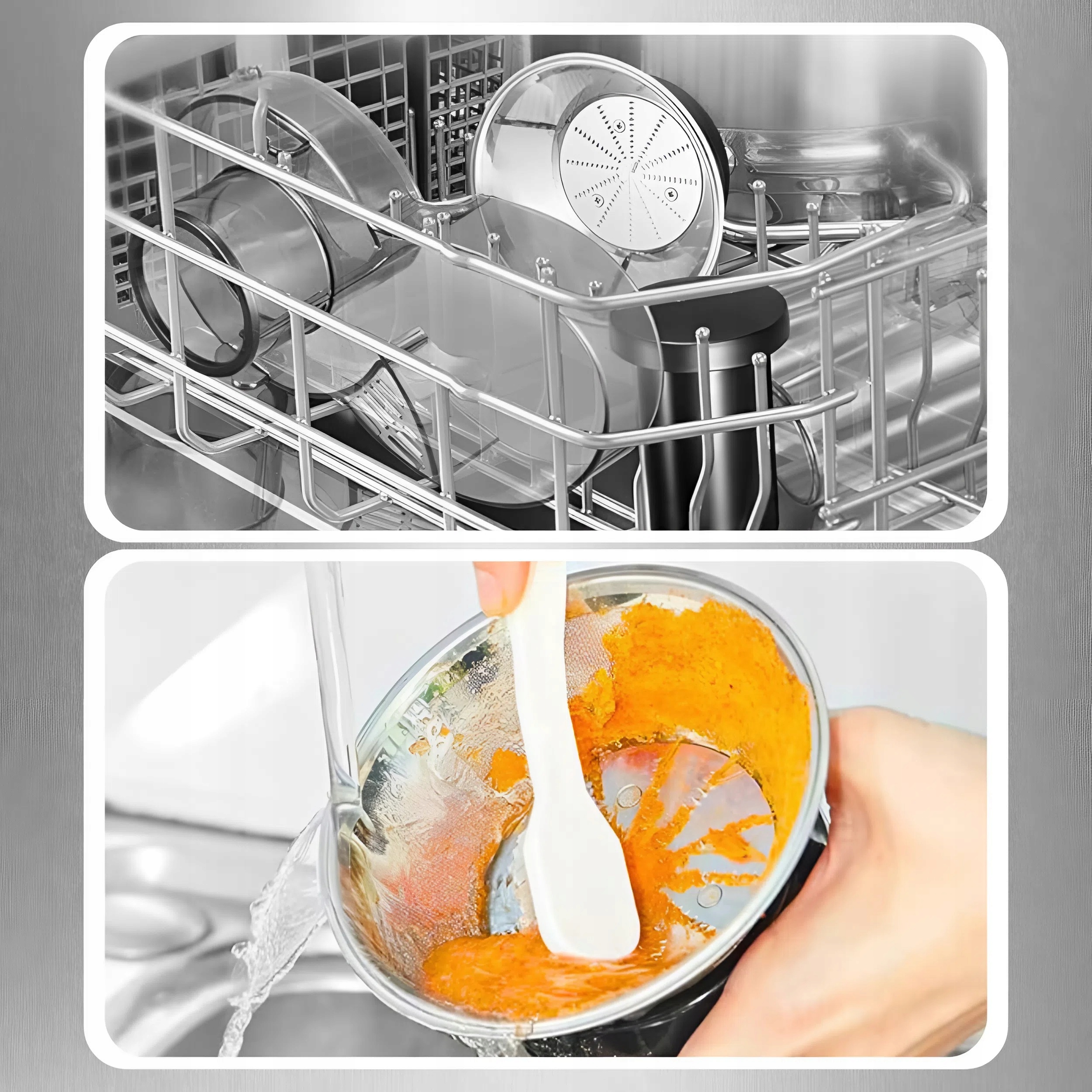 ✅ Більшість елементів (за винятком приводного блоку) можна безпечно промивати в посудомийній машині.