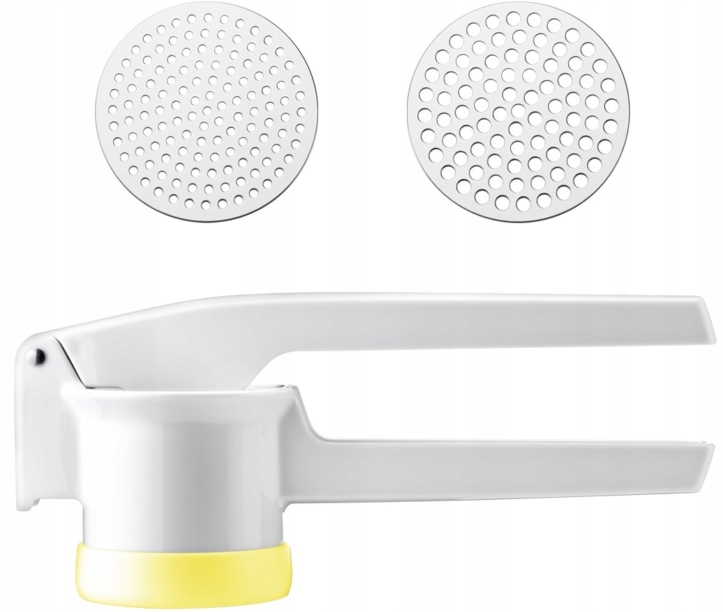 Ідеально підходить для приготування картопляного пюре та макаронів для супу. Прес виготовлений з міцного пластику, а диски виготовлені з високоякісної нержавіючої сталі. Можна мити в посудомийній машині.