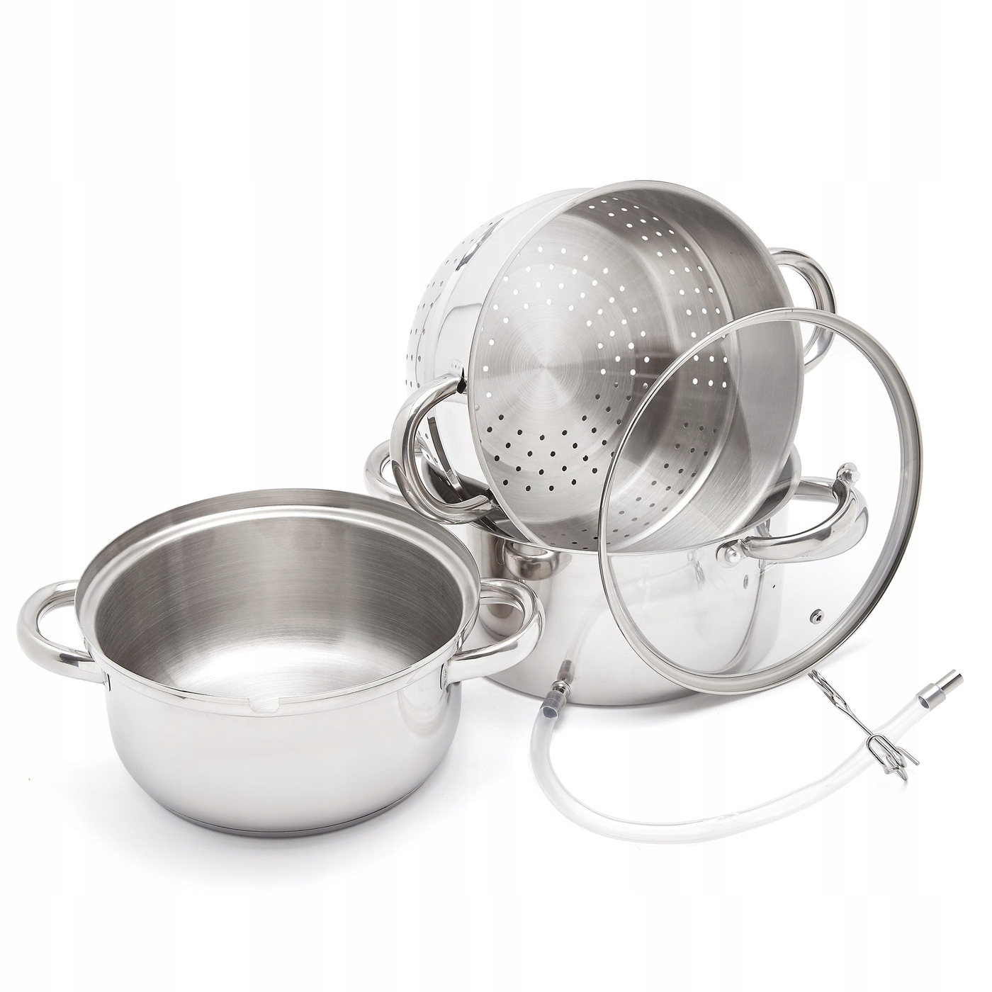 Продукт міцно виготовлений і безпечний у використанні. Багатство смаку соків, які ви готуєте, забезпечується нержавіючої структури соковижималки. Це також гарантує легку експлуатацію продукту та прибирання без проблем після роботи. Сік буде видалений завдяки зручній змії (наприклад, належним чином регулюючи дизайн соковижималки, ви також зможете приготувати в ньому овочі або м'ясо з пару - ви будете готувати вечерю, як у паровий горщик. Розмір і форма продукту допоможуть вам його зберігати (він вузький і високий).