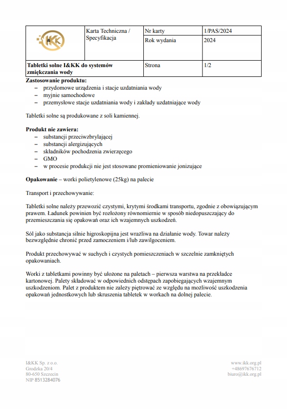 ✅ Таблетки солі IKK відповідають стандартам, що діють у Польщі.