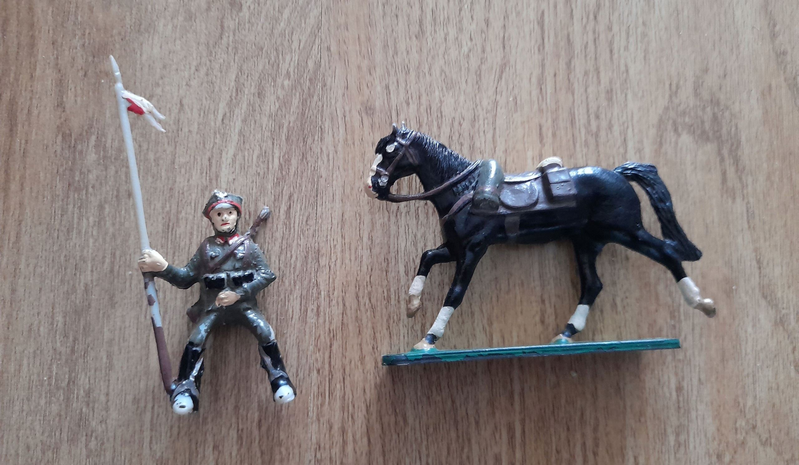 оригінальні пластикові статуетки солдат і кінь з періоду PRL. Стан, як на знімках, ознаки використання, стирання фарбування.