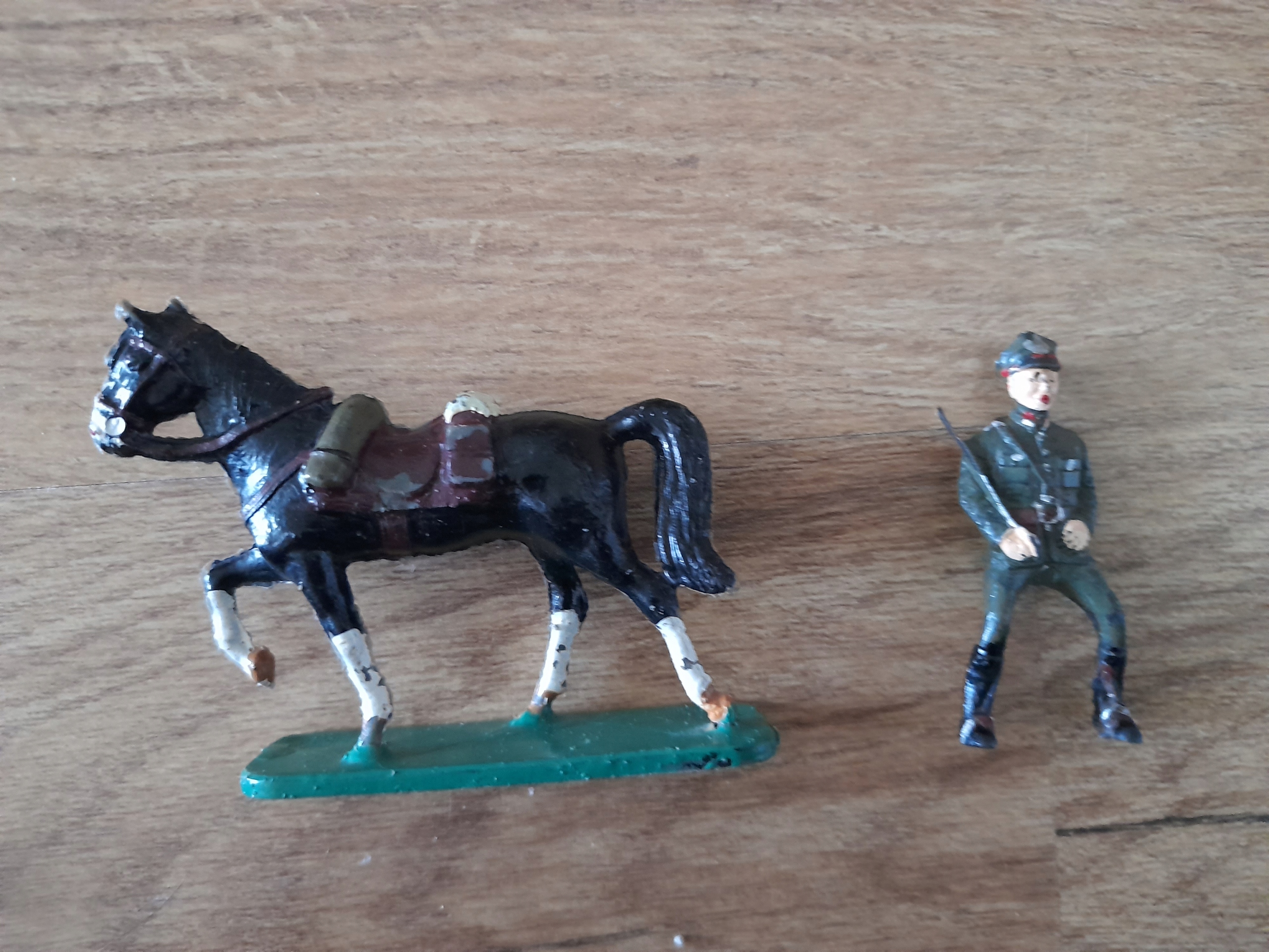оригінальний солдат з конем з пластику PRL, стан, як ви бачите стирання фарби.