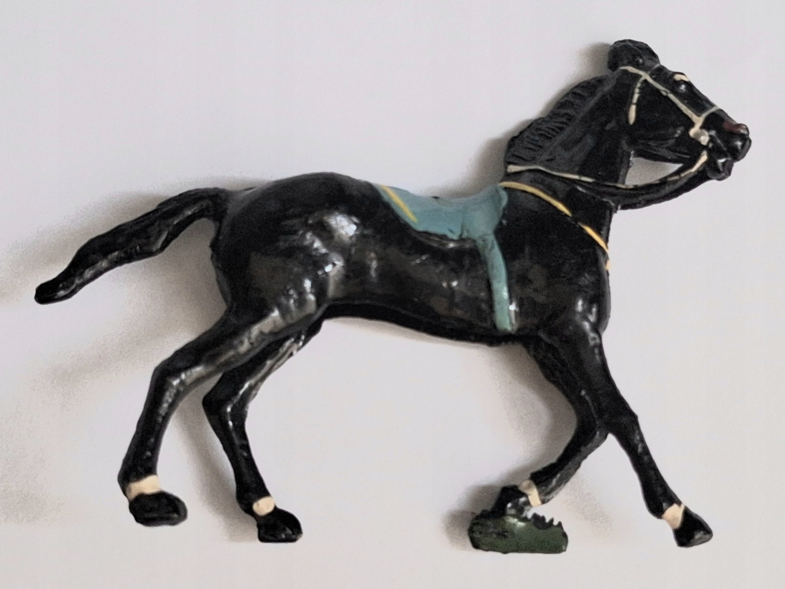 Як на малюнках - я намагався ретельно представити умову на малюнках. Цей зелений покрив на одному копитах, на мою думку, є виробничою бухтою (принаймні, так він виглядає під лупу). Може, це був момент, що кінь стабільний? Я не знаю в цій темі. Запропонована копія, мабуть, набір з одним лицарями, що виставляються на моїх аукціонах