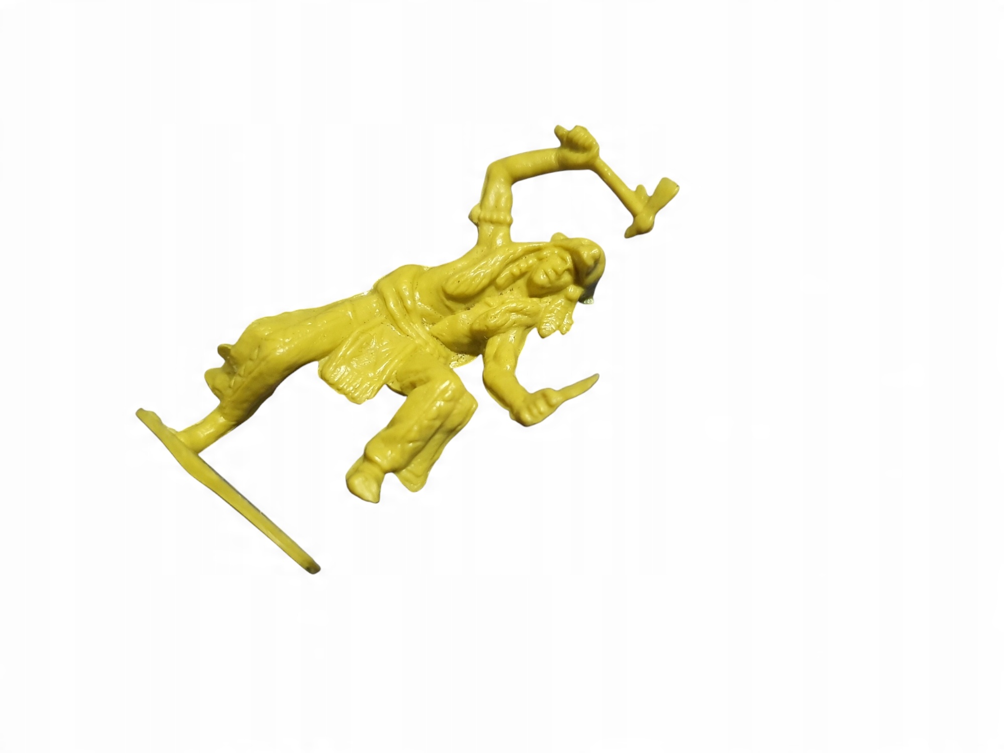 стара пластикова статуетка солдата, що зображує індіанця в динамічній позі, що тримає ніж і сокиру. Статуетка була вироблена в Китаї, швидше за все, у 1980 -х або 1990 -х роках. Виготовлений з жовтого пластику, характерного для цього періоду, відрізняється деталями, характерними для ремесел з тих часів.