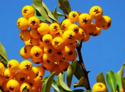 Широкорослий прямостоячий кущ з декоративними плодами і колючими пагонами. Виростає до 1,5 м. Листя вічнозелені, в суворі зими засихають. Квітки білі, V. Плоди кулясті, розміром з горошину, яскраво-жовті, зберігаються на кущі до зими, серпень-грудень.