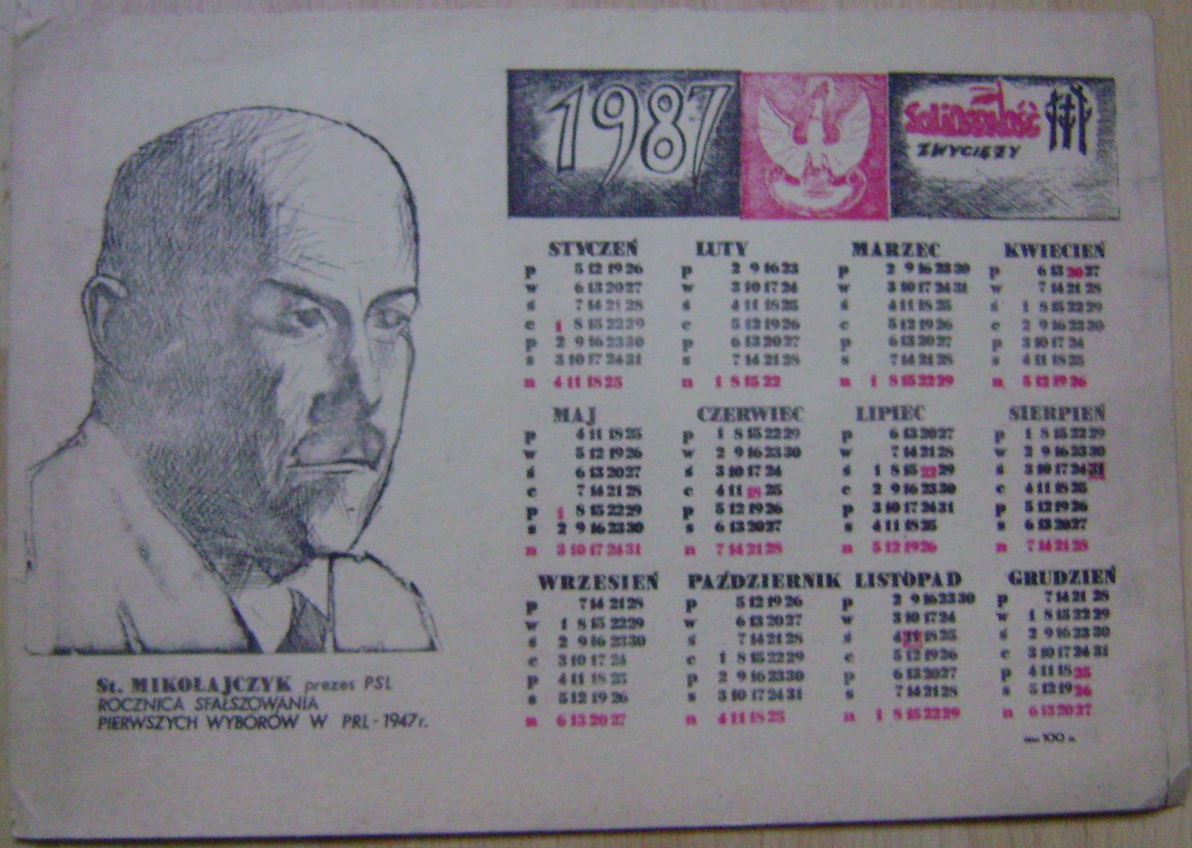 Солідарність -Calenar за 1987 рік -смілдарність виграє -міколаджчик