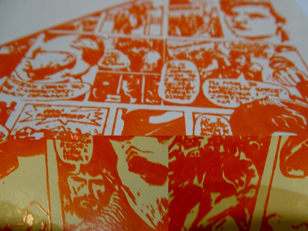 Примітки/Примітки: сторінки з друкованими коміксами, характерними для цього періоду, нерівномірно вирізані та характерні для машин мімеографів різноманітні розмальовки та дублювання тексту. видимі сторінки 3-4 і 13-14 трохи напівпрозорі. Можливо, це пов’язано з тим, що вони друкували чим могли і тими фарбами, які були в наявності тієї ночі. ймовірно, картки друкували поетапно, інтервал між друком наступних був, можливо, навіть кілька днів. отже, відмінності в друку сторінок.
