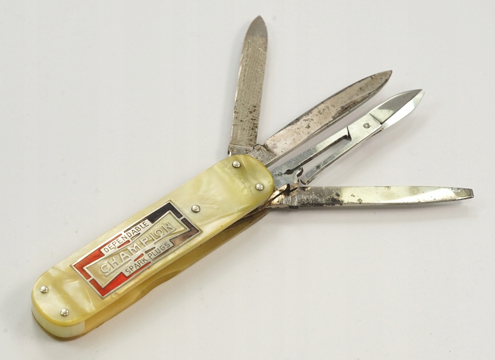 оригінал b. Цікавий старий підписаний кишеньковий нож Solingen, рідкісна стара модель з рекламною чемпіонкою іскрової штепсельної вилки /автомобільної марки - запалювання SWALKAT /; 4 сталеві леза, обшивка, що нагадує перлинну масу. Розмір: Довжина після розповсюдження леза на 11,8 см, довжина після складання 6,8 см. Дуже хороші незрозумілі ознаки використання, всі лопатки складаються правильно, з правильним опором, після розповсюдження лопатей немає слабких, лише в ножиці немає пружинних пластини. Рекомендую, оригінальний рідкісний предмет за доступною ціною. Надзвичайно цікавий рідкісний оригінальний об’єкт. Умова ідеально видно на знімках на описі аукціону.