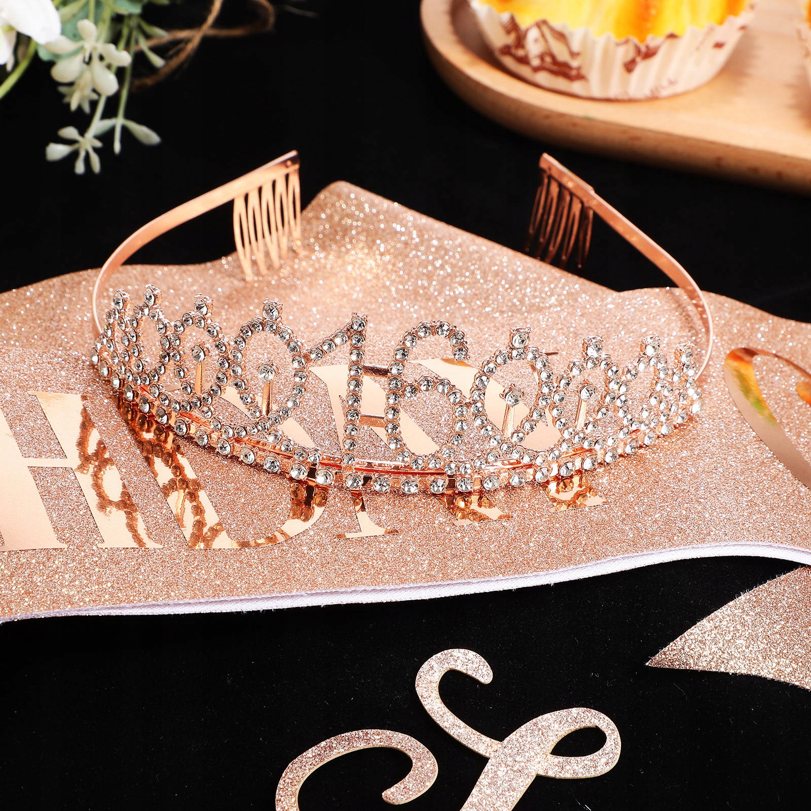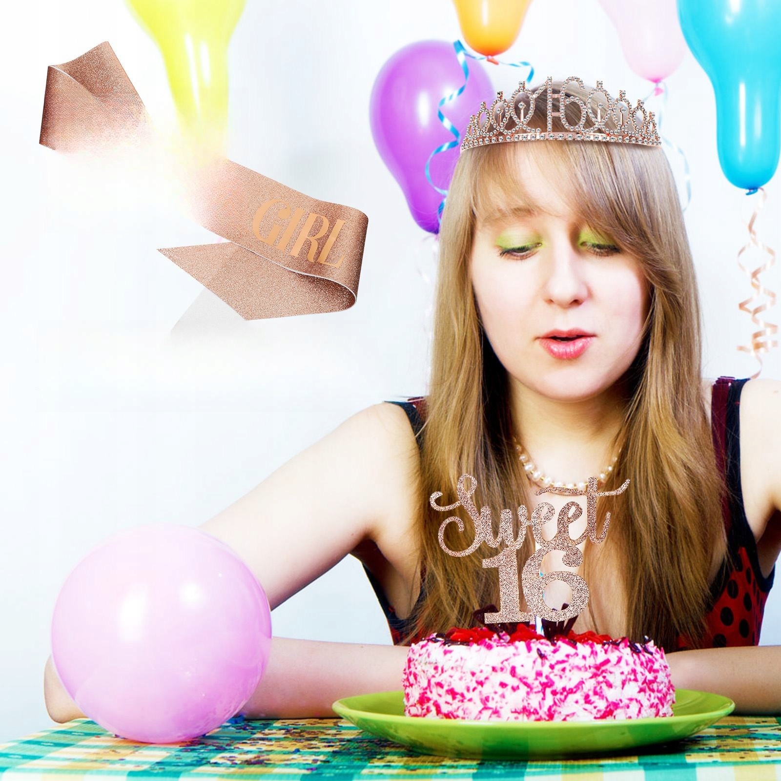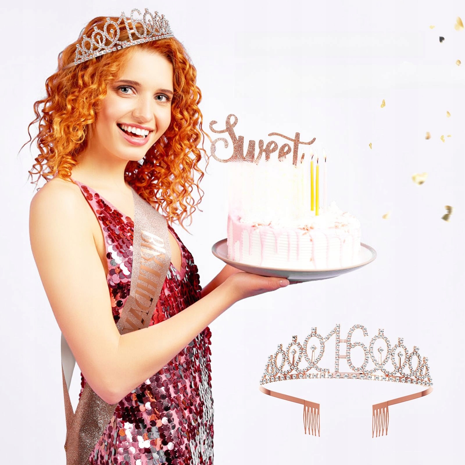 ✅Цей продукт являє собою набір прикрас для святкування дня народження, включаючи корону зі стразами, дизайнерську верхівку для торта та пояс з літерами. Цей набір стане чудовою та стильною прикрасою до вашого милого 16-річчя. Ні ви, ні ваші гості не забудете цей золотий 16-й день народження.