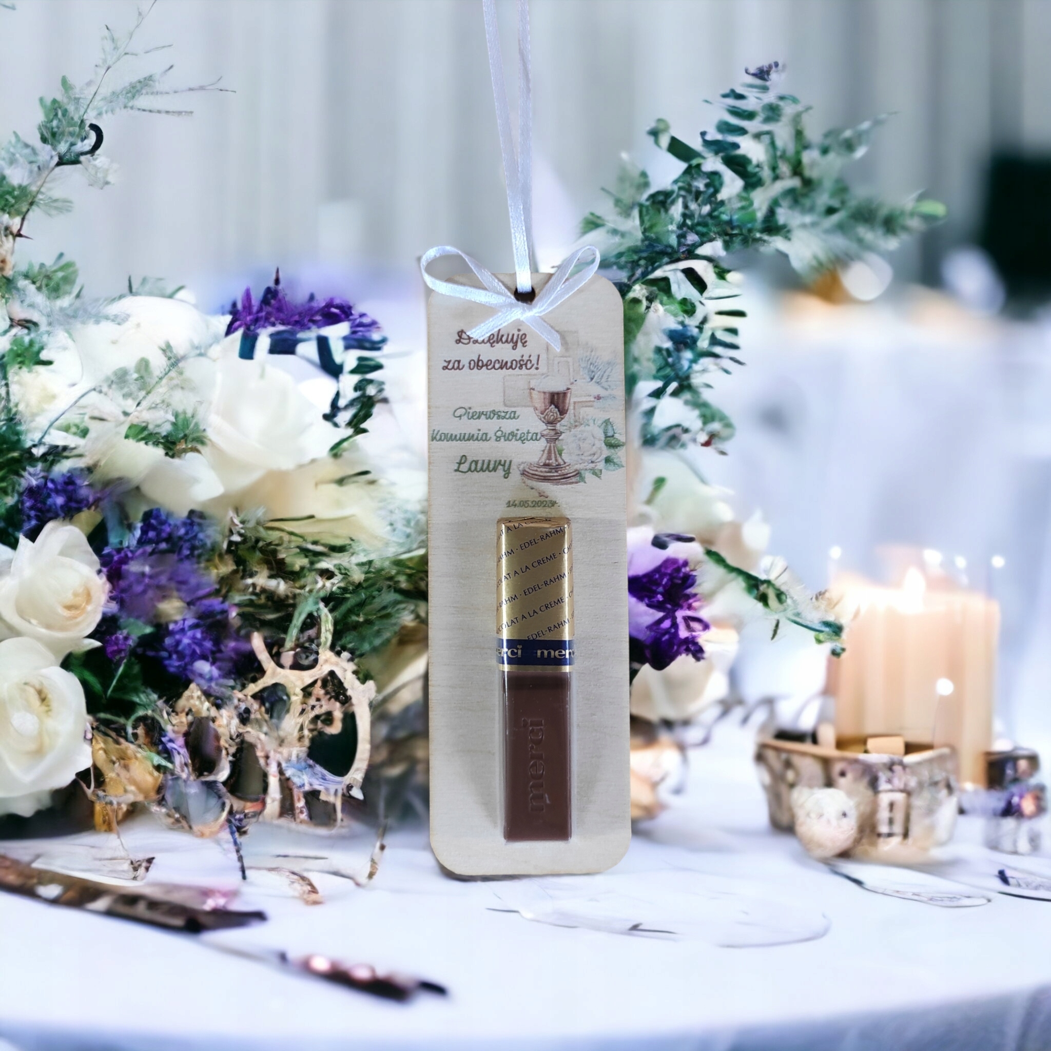 Солодкий подарунок Подарунок до причастя для гостей Принт шоколадної закладки Merci
