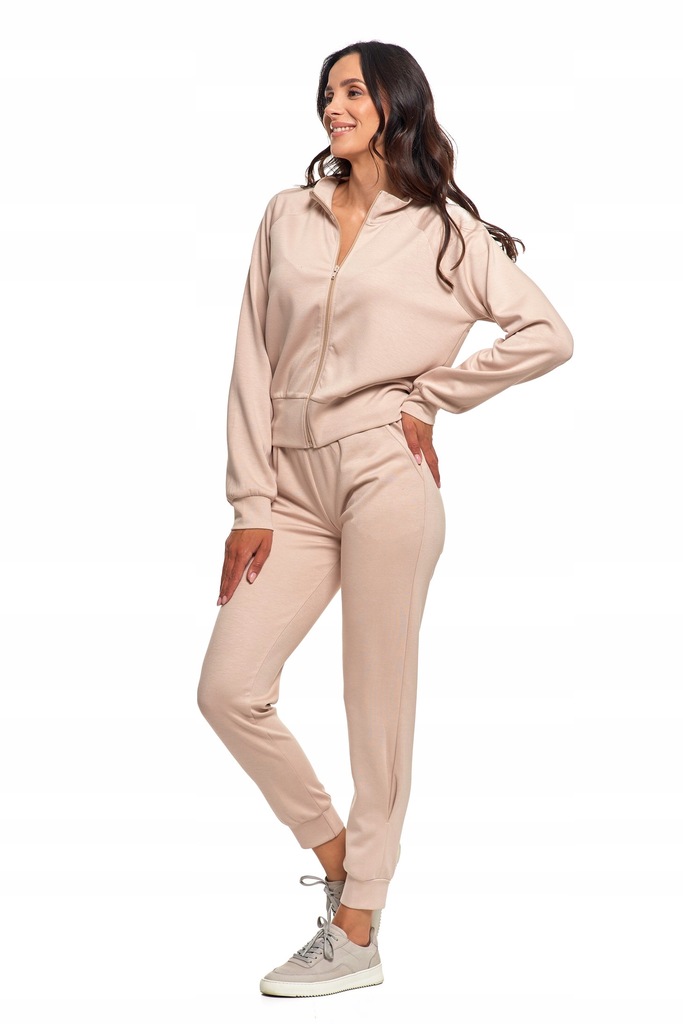 елегантні та зручні жіночі спортивні штани, які чудово підходять як для щодня, так і під час відпочинку. Штани мають високий стан з широкою еластичною смугою, що забезпечує ідеальну придатність до фігури та носіння комфорту цілий день. Крім того, зв'язування на струні на талії дозволяє точно встановити ширину. Вони закінчені широким, некомпактним Welt, який підкреслює їх сучасний та спортивний характер. На зовнішній частині ніг, за щиколоткою, є декоративні зшивання, які додають тонкий стиль і відрізняють ці штани від інших. Штани гладкі, без візерунка, що робить їх універсальним елементом одягу, що відповідає багатьом стилям.
