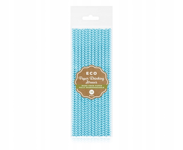 Соломинки паперові блакитного кольору з візерунками, 12 шт., 20 см