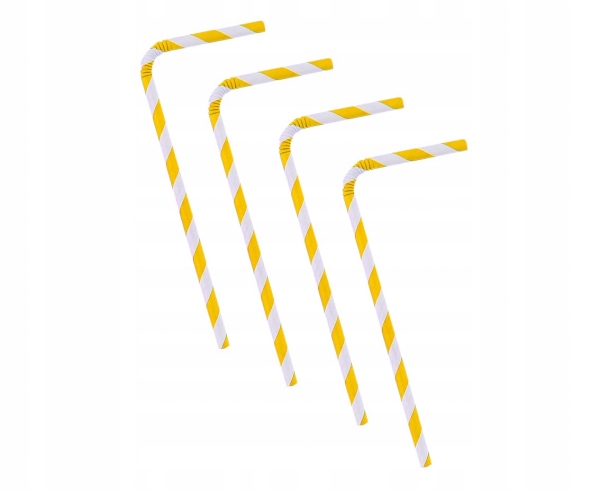 Соломинки паперові жовті з білими діагональними смужками.