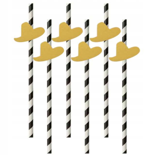 Соломинка паперова "Мексиканське сомбреро", біло-чорна, 19,5 см, 6 шт