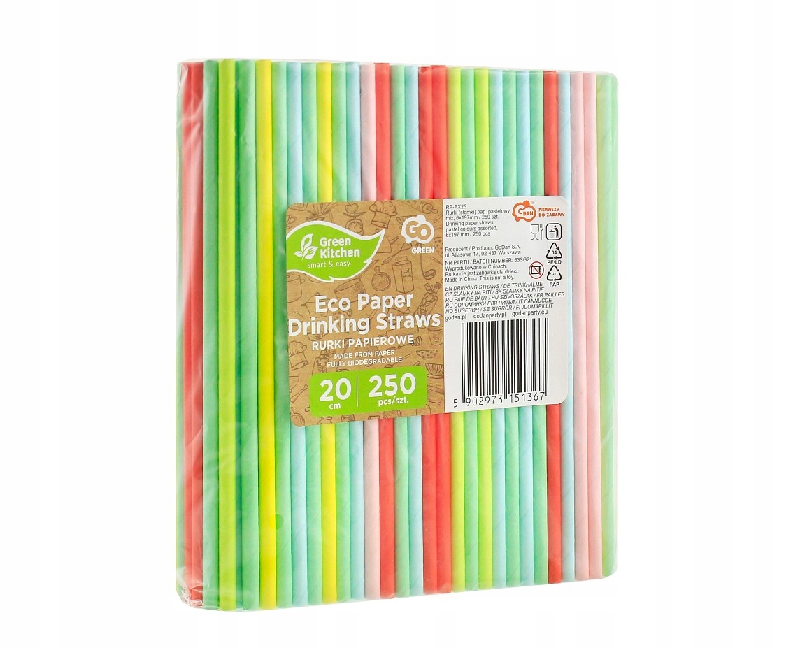 ПРОДУКТ: СОЛОМИНКА ДЛЯ НАПІЮ - ПАПІР 250 ШТ. 6x197 мм - ПАСТЕЛЬНІ КОЛЬОРИ