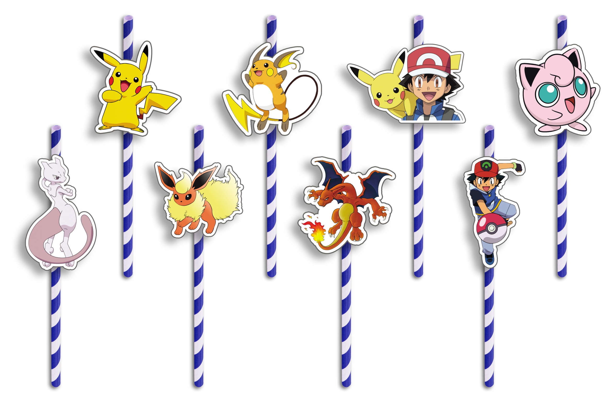СОЛОМИНКИ НА ДЕНЬ НАРОДЖЕННЯ З ПЕРСОНАЖАМИ ПОКЕМОНІВ 8 ШТ