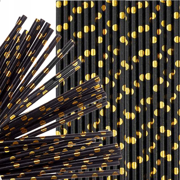 Оригінальні та зі смаком чорні соломинки з дрібними золотистими крапками, незамінні для різноманітних особливих випадків.