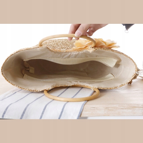 СОЛОМ'ЯНА СУМКА ПЛЯЖНИЙ КОШИК З ДЕРЕВ'ЯНИМИ РУЧКАМИ
