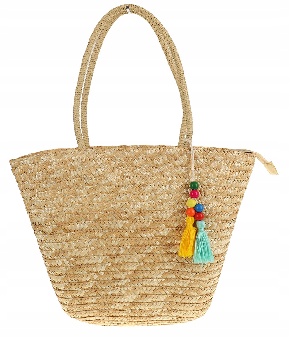 СОЛОМ'ЯНИЙ КОШИК НА ЛІТО, ЛЕГКА СУМКА НА ПЛЕЧІ, світло-бежевий