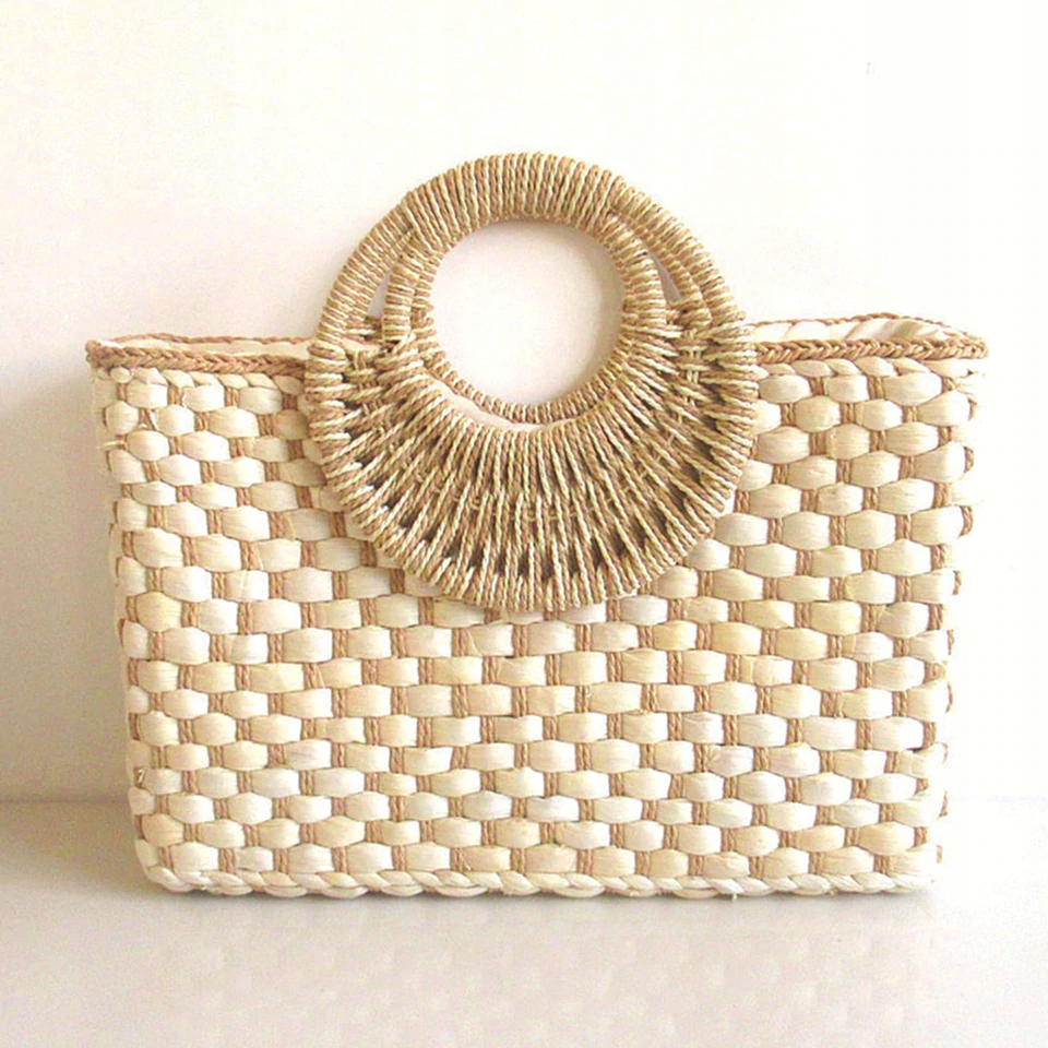 СОЛОМ'ЯНИЙ КОШИК ПЛЯЖНА СУМКА ЛЮКС БЕЖЕВА