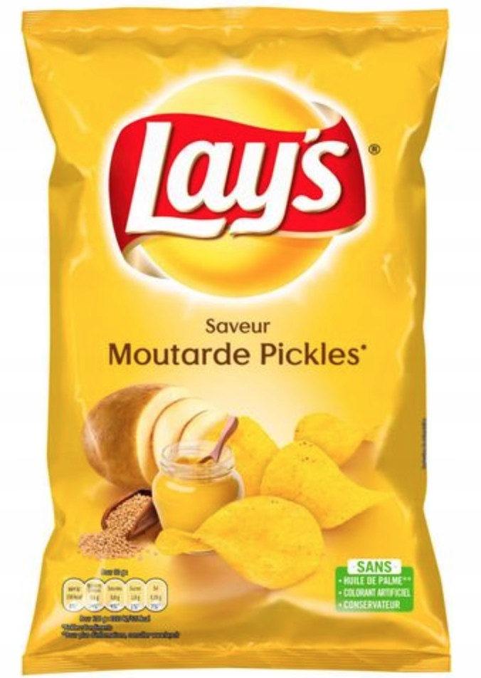 Чіпси Lay's ретельно готуються з 1932 року з використанням найкращої картоплі та інгредієнтів. Цей бренд відомий у всьому світі. Французька філія Lay's випустила картопляні чіпси зі смаком гірчиці. Lay's вибирає відібрану картоплю у своїх постачальників у Франції. Щоб створити для вас найякісніший пакет чіпсів з цікавими смаками.
