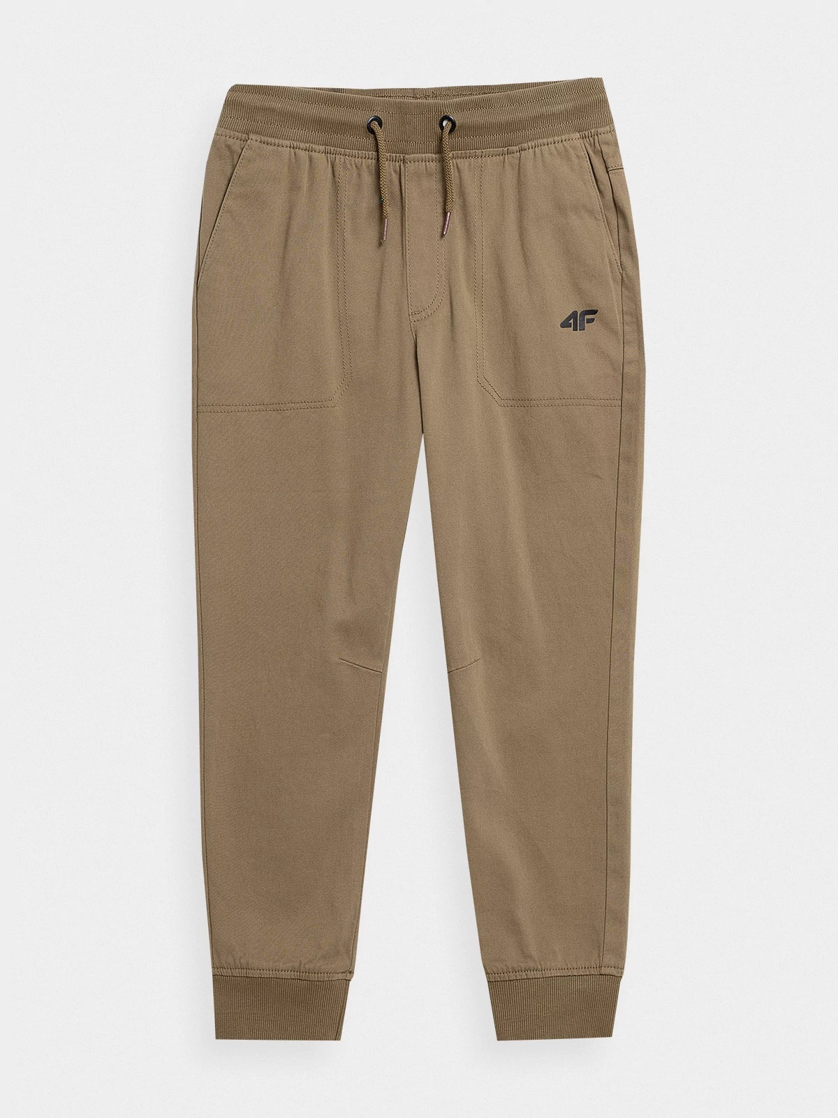 дитячі штани для хлопчика 4F. Вони ідеально підходять для фізичних навантажень та для повсякденного використання. Виготовлений з високоякісної бавовняної та поліестерної суміші. Вони були обладнані двома бічними кишенями. Ноги закінчилися зварюваннями, а регульований ремінь дозволяє відповідати точній тілі.