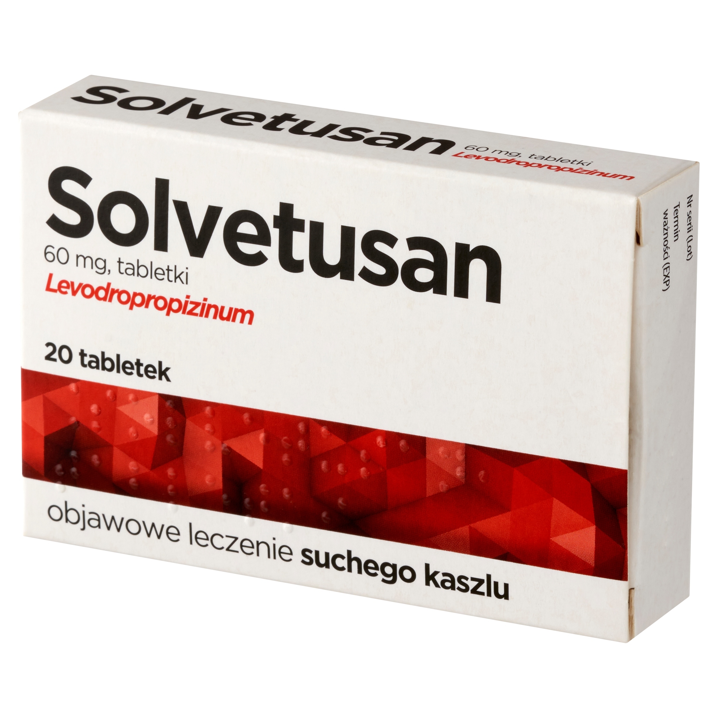 Солветусан – лікарський засіб у формі таблеток, призначений для симптоматичне лікування сухого кашлю. Можна застосовувати дітям з масою тіла понад 30 кг і дорослим.
