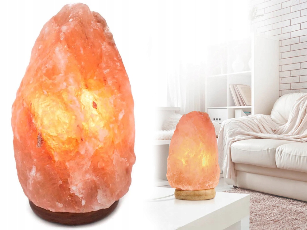 Соляна лампа — це порожнистий шматок солі, всередині якого міститься електричний елемент, що складається з лампочки та патрона, встановленого на металевій пружині.