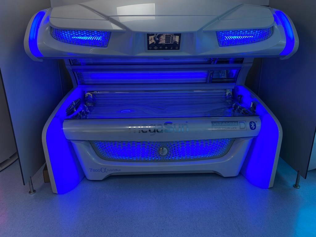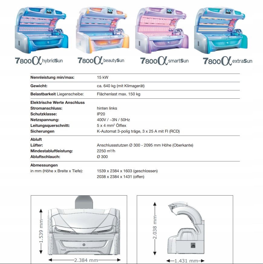 Нова модель Megasun 7800α: інтенсивне сонячне світло з дуже високим вмістом UVB для збільшення накопичення пігменту та утворення вітаміну D .Це можливо завдяки унікальним лампам extraSunlight.