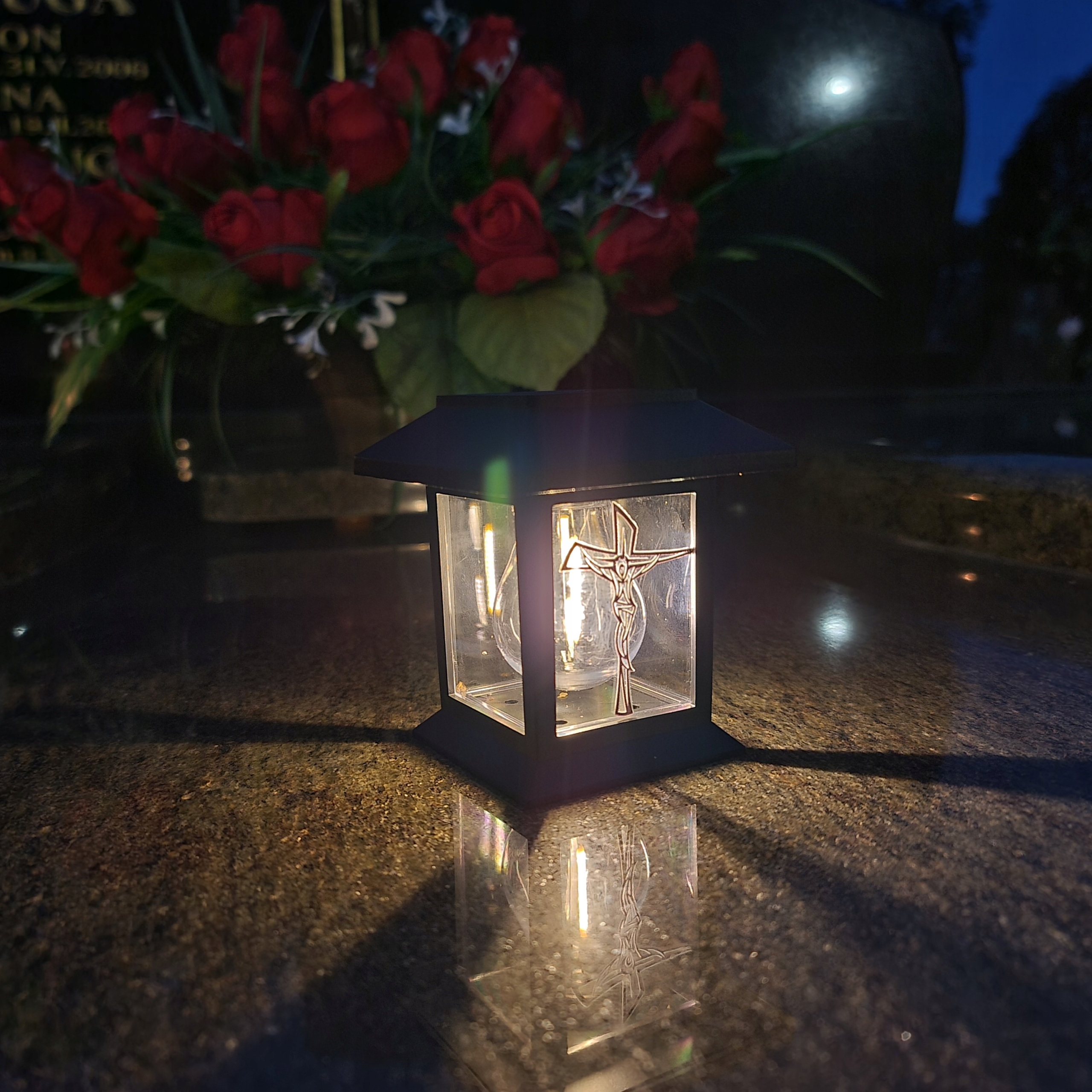 СОЛЯРНА LED СВІЧКА, ЛІХТАР НА МОГИЛУ, СТАТУЕТКА ДЛЯ КЛАДОВИЩА З ХРЕСТОМ