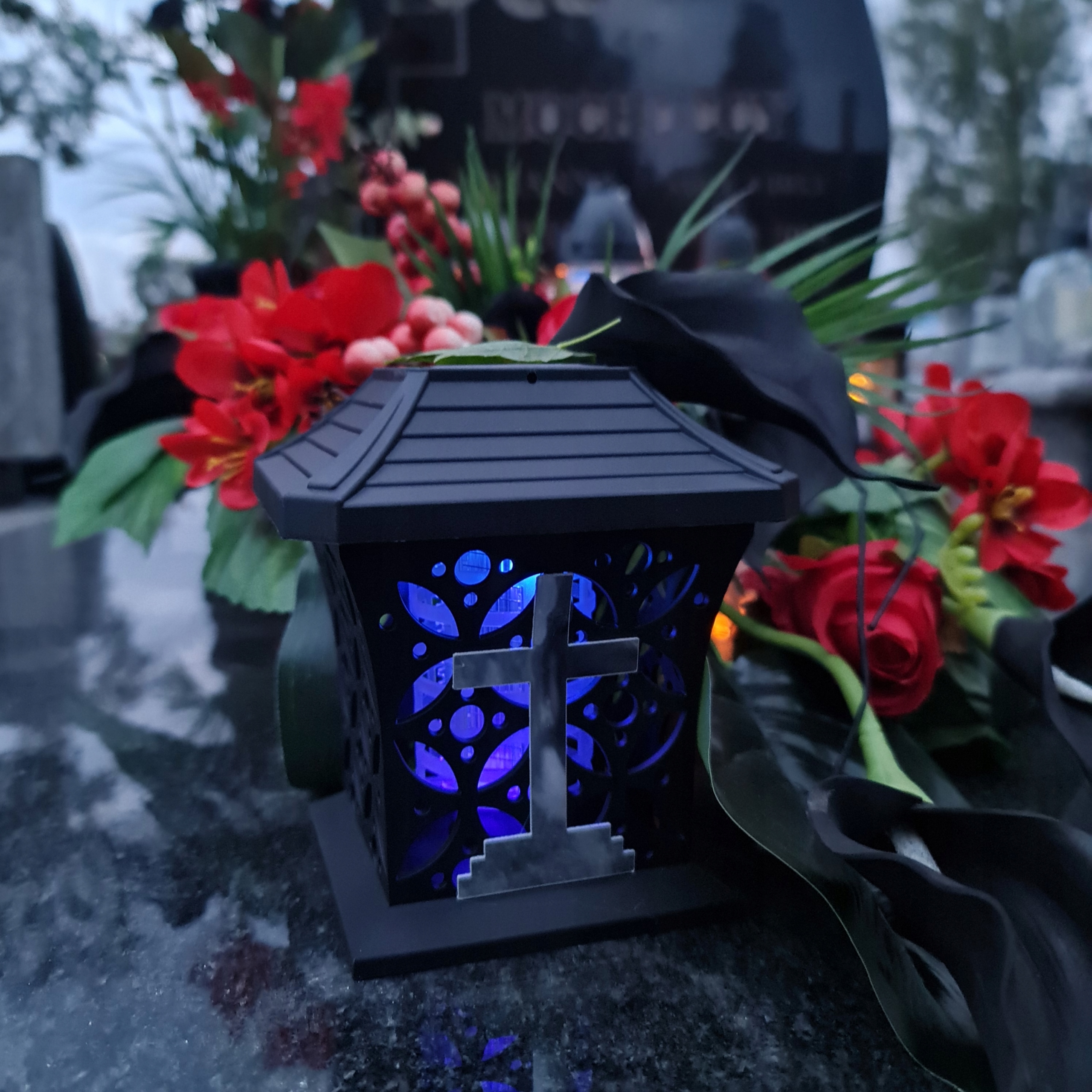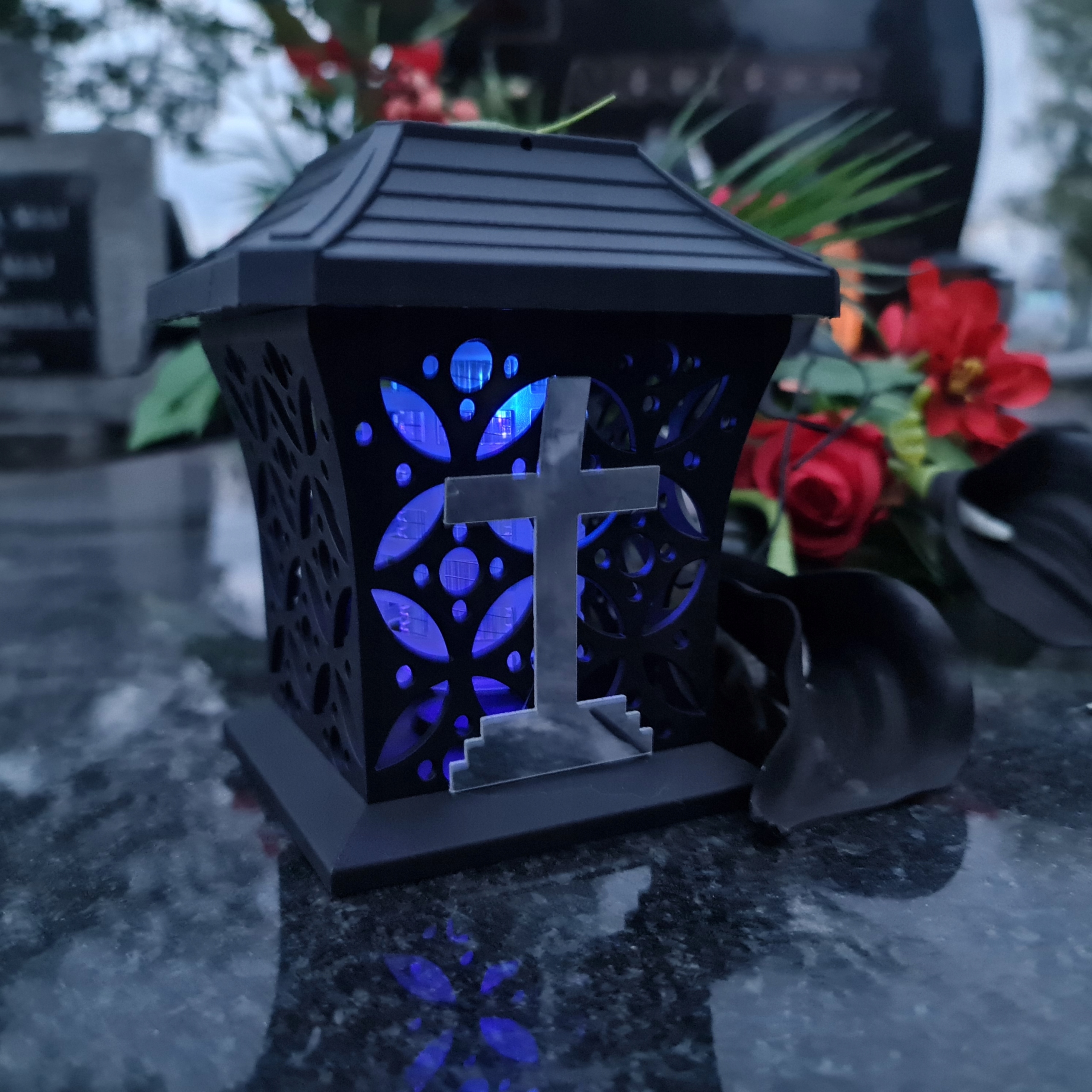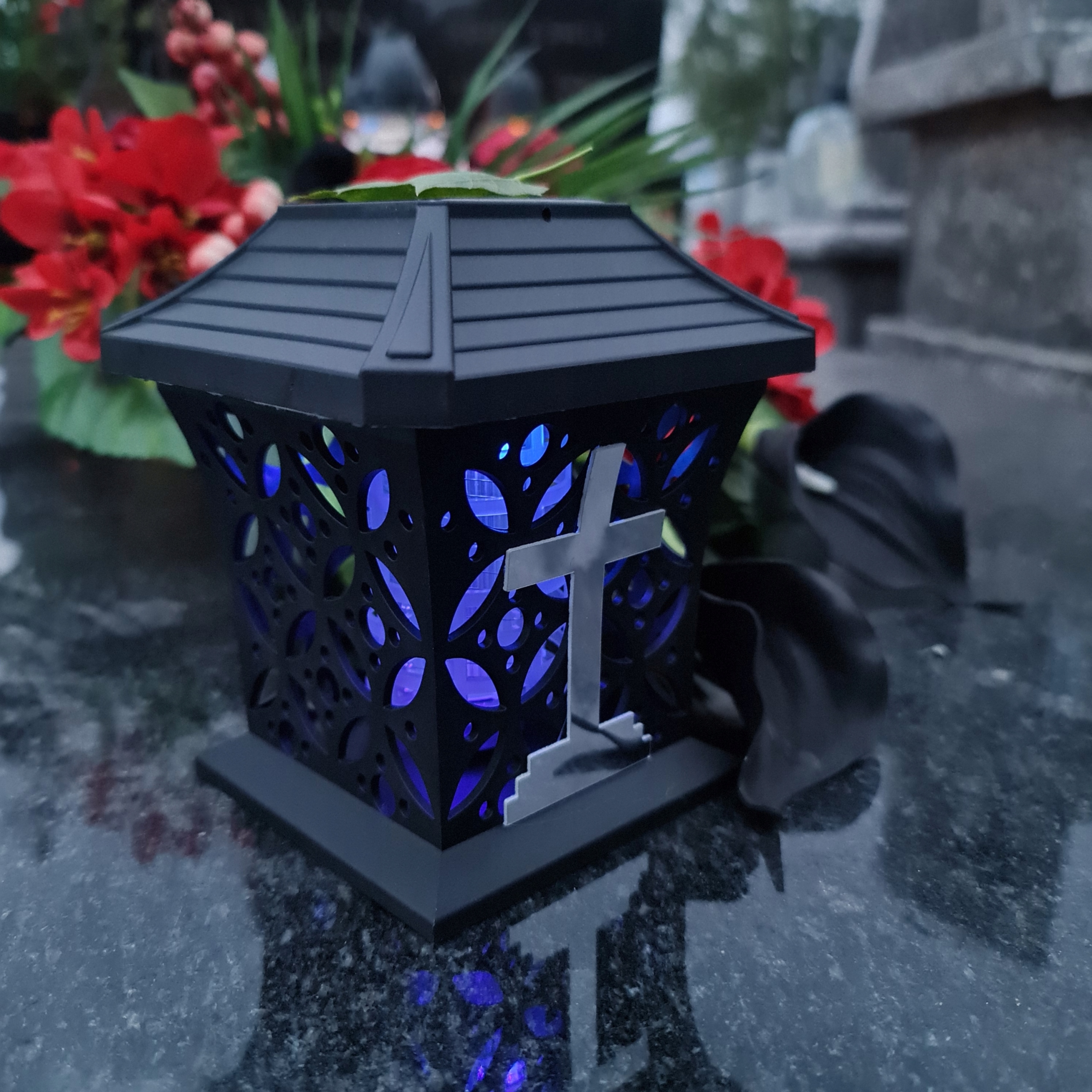СОЛЯРНА LED СВІЧКА, ЛІХТАР НА МОГИЛУ, СТАТУЕТКА ДЛЯ КЛАДОВИЩА З ХРЕСТОМ
