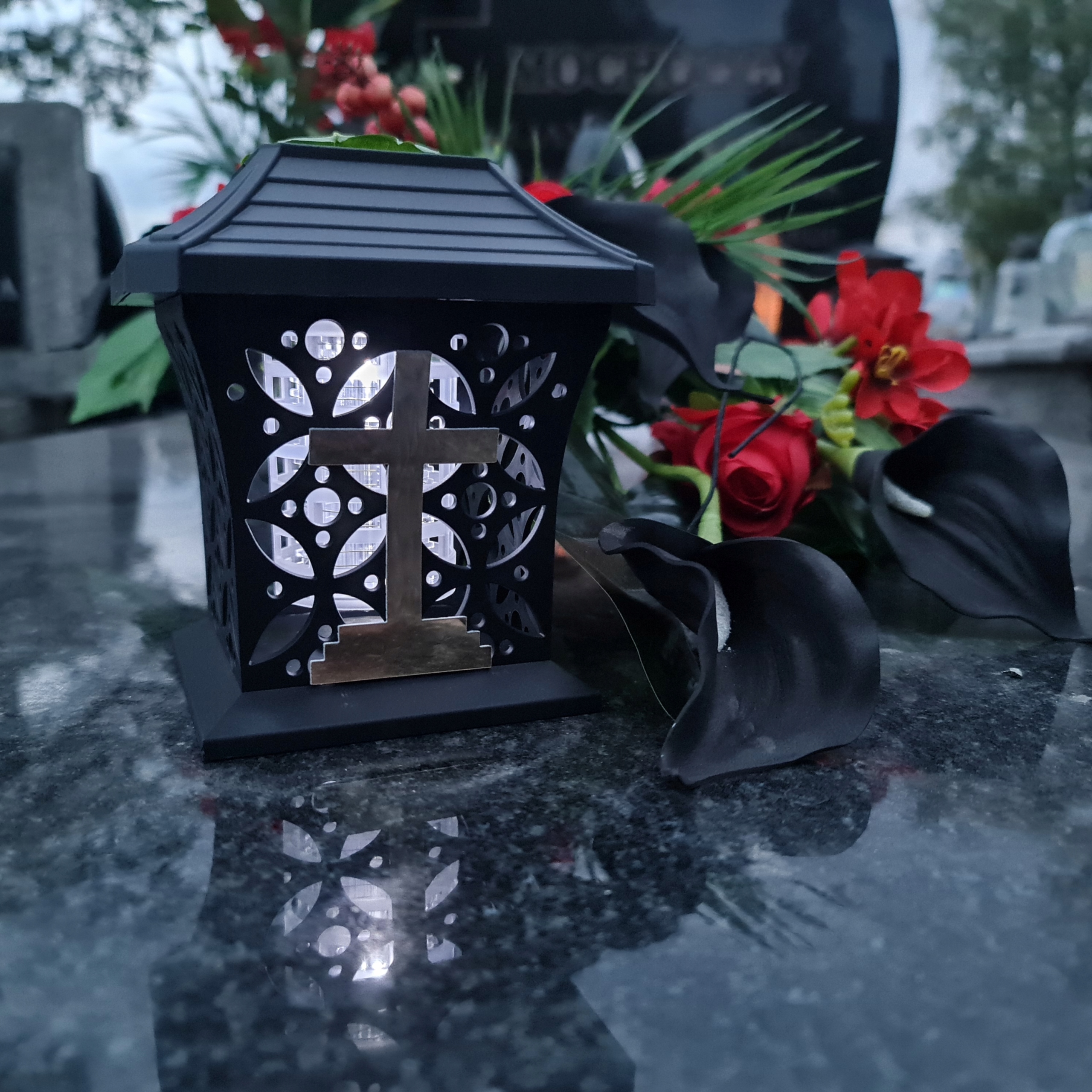 СУЧАСНИЙ СОНЯЧНИЙ НАГРОБНИЙ ЛАМПА, НАТХНЕНИЙ КЛАСИКОЮ З ЗОЛОТИМ ХРЕСТОМ