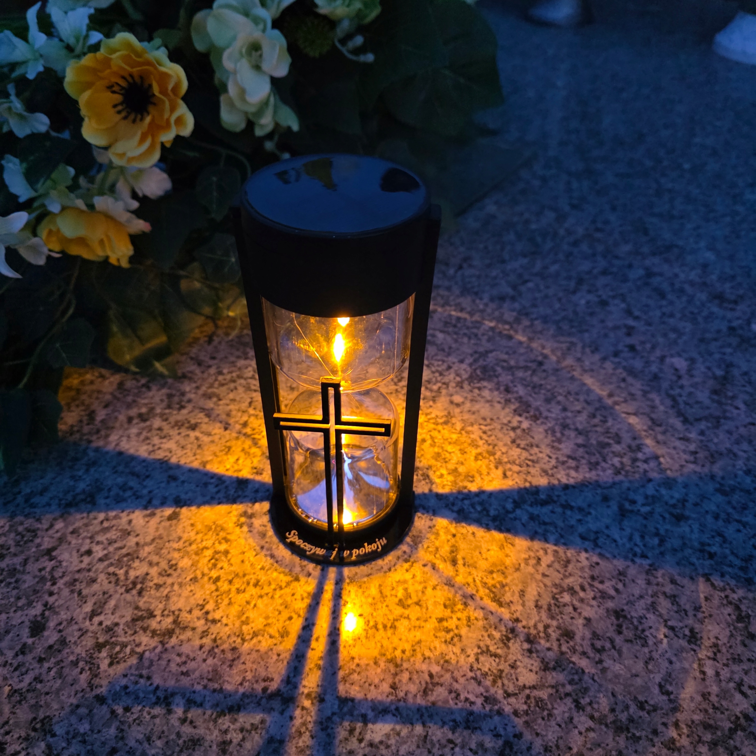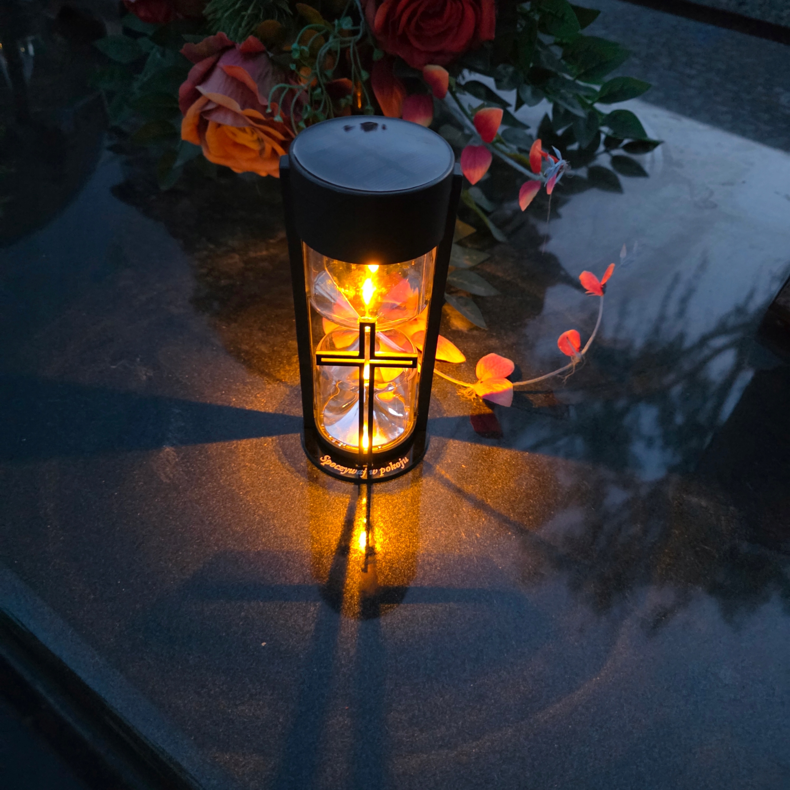 СОЛЯРНА LED СВІЧКА, ЛІХТАР НА МОГИЛУ, СТАТУЕТКА ДЛЯ КЛАДОВИЩА З ХРЕСТОМ