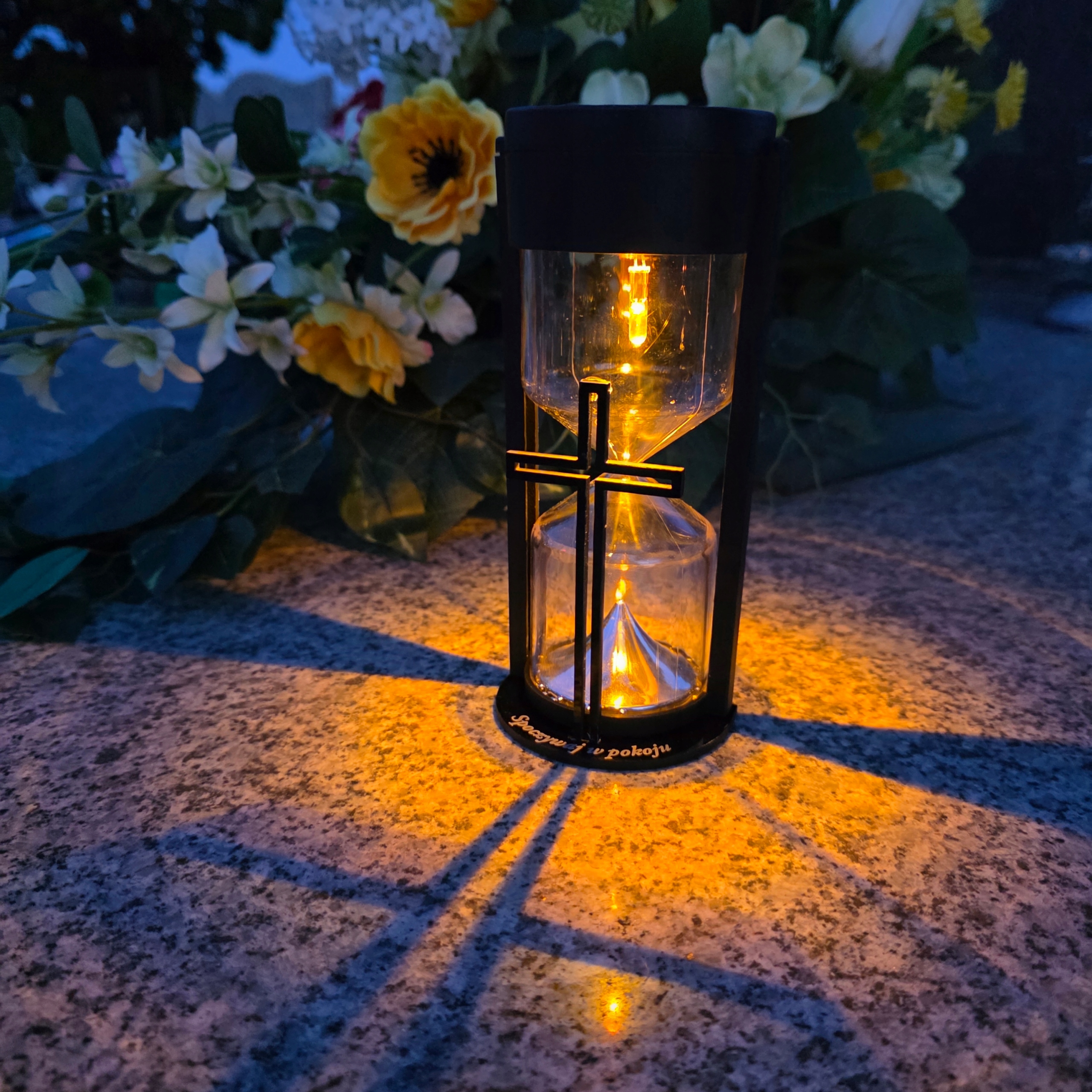 Відкрийте для себе елегантний спосіб вшанувати пам’ять своїх близьких за допомогою екологічно чистої світлодіодної сонячної свічки. Виготовлений надзвичайно дбайливо, з небиткого акрилового скла та ефекту природного теплого світіння. Ця свічка є поєднанням сучасності та традицій. Високоякісні компоненти роблять його стійким до будь-яких погодних умов. Свічка має вбудований перемикач, який потрібно активувати, щоб ліхтар вмикався та вимикався в сутінках 360 днів на рік без нашого втручання протягом наступних кількох років.
