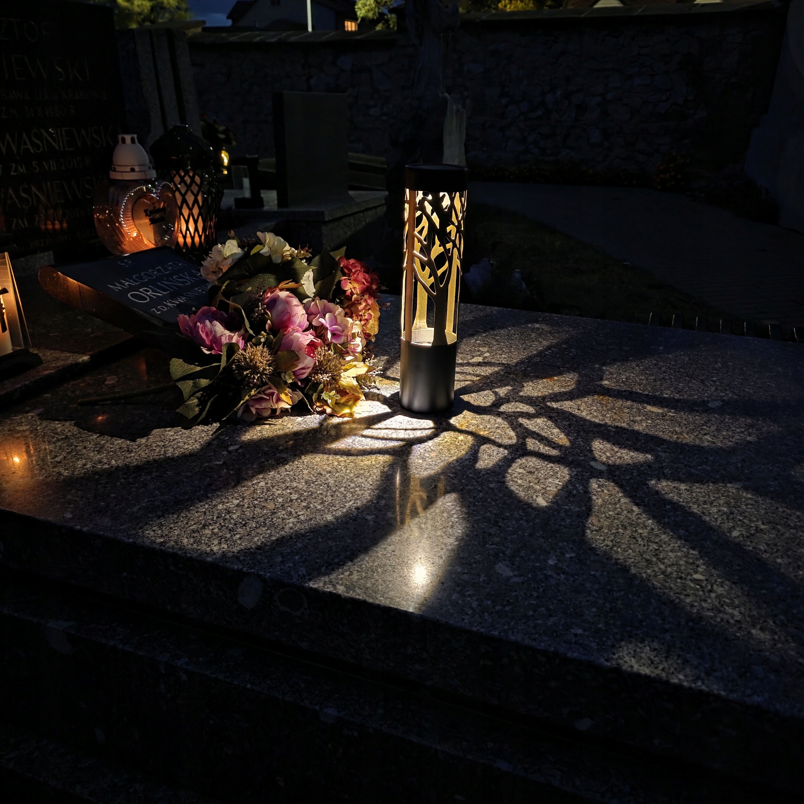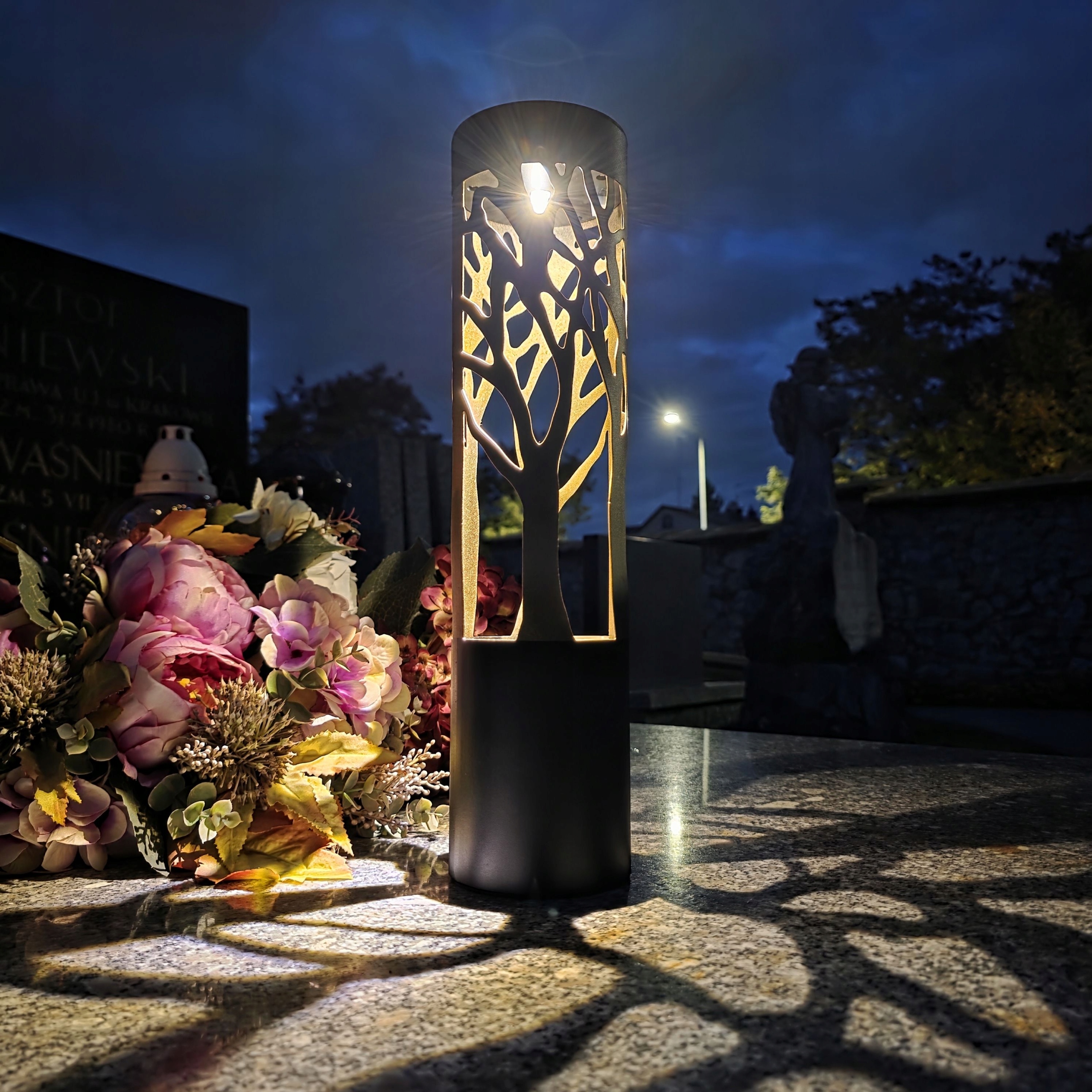 Виготовлена з високоякісних матеріалів, цю свічку вирізняє оригінальний ажурний візерунок із зображенням крон дерев, які символізують життя, відродження та вічність. Всередині є енергозберігаюча світлодіодна лампа, яка делікатно підсвічує інтер’єр, створюючи винятково атмосферний ефект.