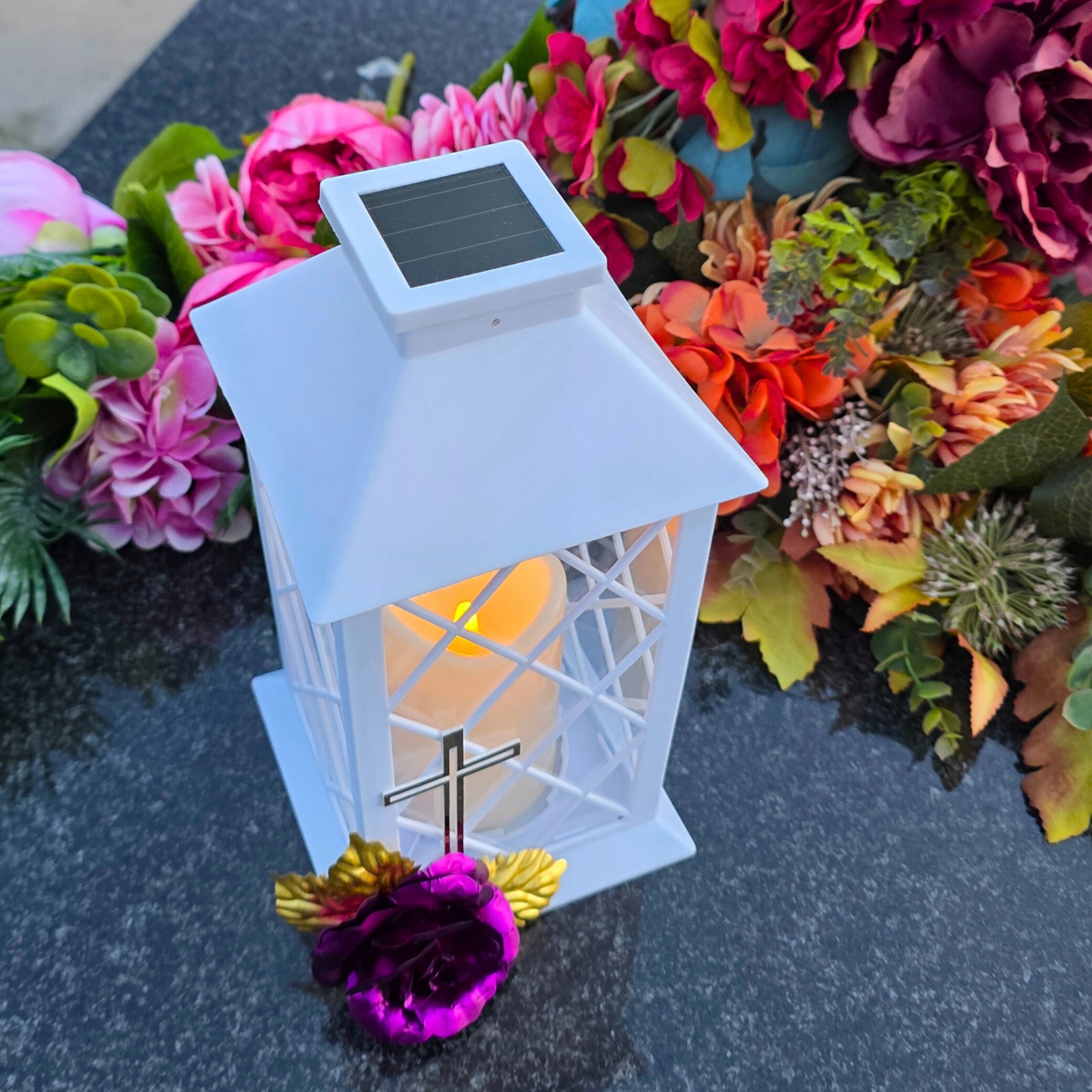 Ця унікальна сонячна лампа поєднує символізм пам’яті та позачасову елегантність. Яскравий класичний корпус нагадує стильний ліхтар, а тепле мерехтливе світлодіодне світло створює ефект природного полум’я, як справжня свічка, яка ніколи не гасне.