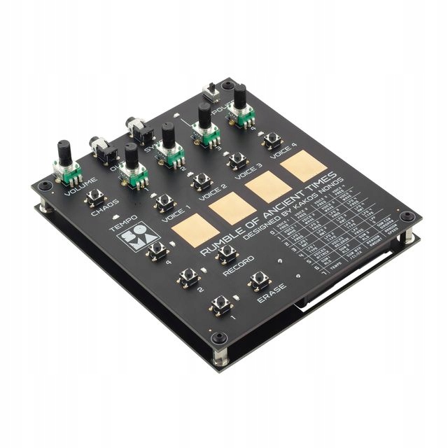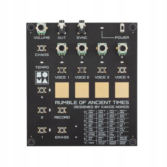 Rumble or Ancient Times від Soma – це зручний міні-синтезатор із багатьма шармом lo-fi та звуки тих часів, коли програми ще були на дискетах. 8-розрядний синтезатор звуку створює широкий діапазон звуків, які ви можете впізнати у відеоіграх MS-DOS і C64, багато галасливих речей, а також більш типові звуки синтезатора, які підходять для музичного контексту. Завдяки ефективному коду «ROAT» майже не потребує ресурсів і може працювати на процесорі, який історично використовувався в холодильниках або мікрохвильових печах. Тому чотирьох батарейок типу ААА вистачає на 130 годин роботи.