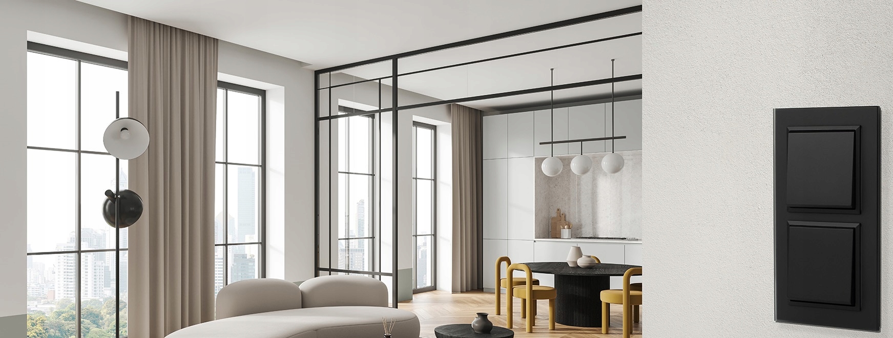 Введення скляних рам у електричні аксесуари -це сміливий крок до сучасності та високого класу дизайну.
