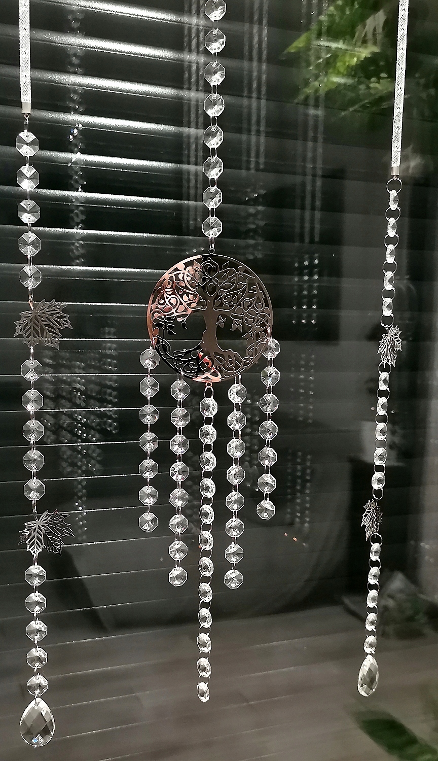 декоративні підвіски 6 штук 3 послідовності скляних намистин, прикрашені красивим кленовим листям, прикріплені до трубки. Лист, виготовлений з металевого кольорового хрому з блиском. Чудово підходить до блискучого дерева.