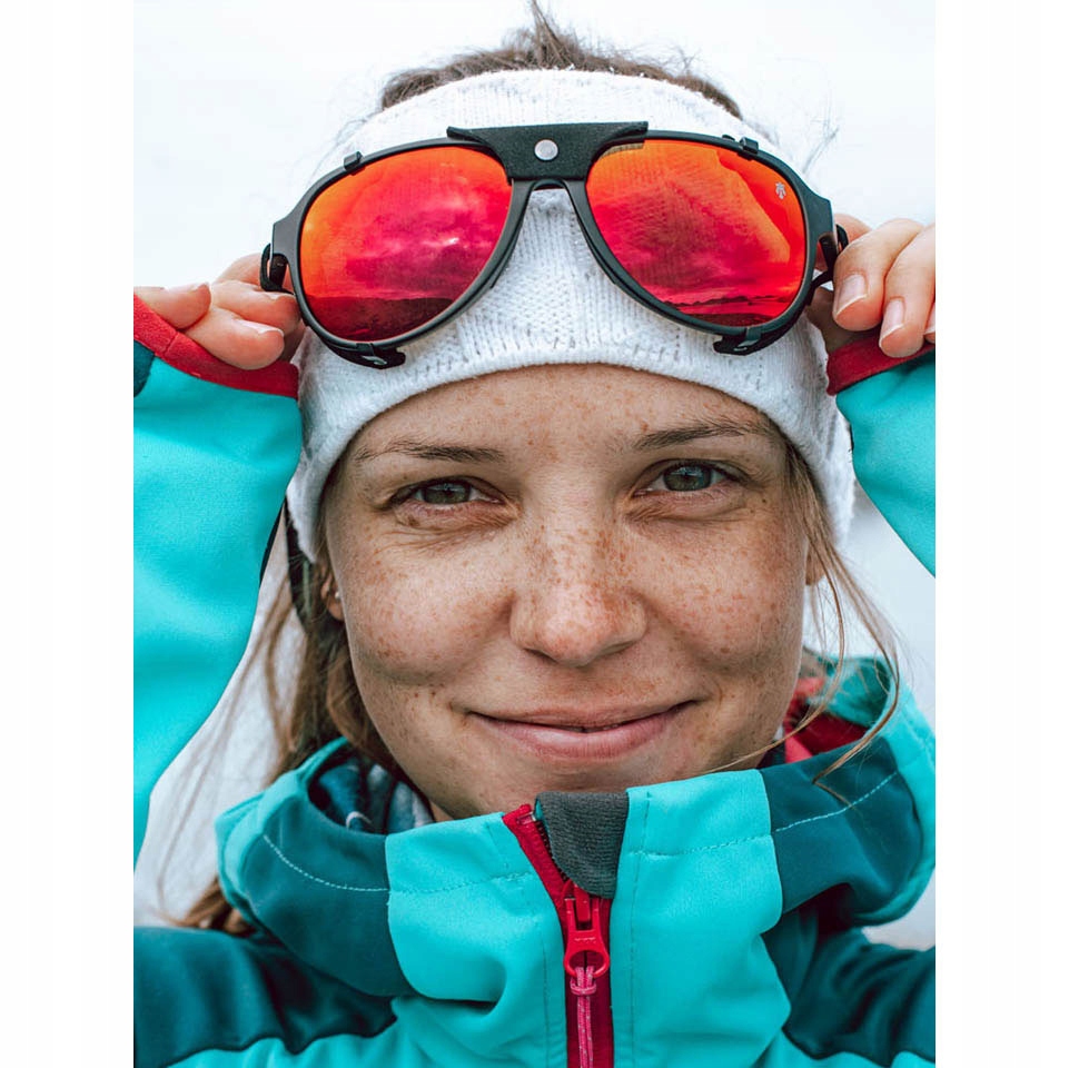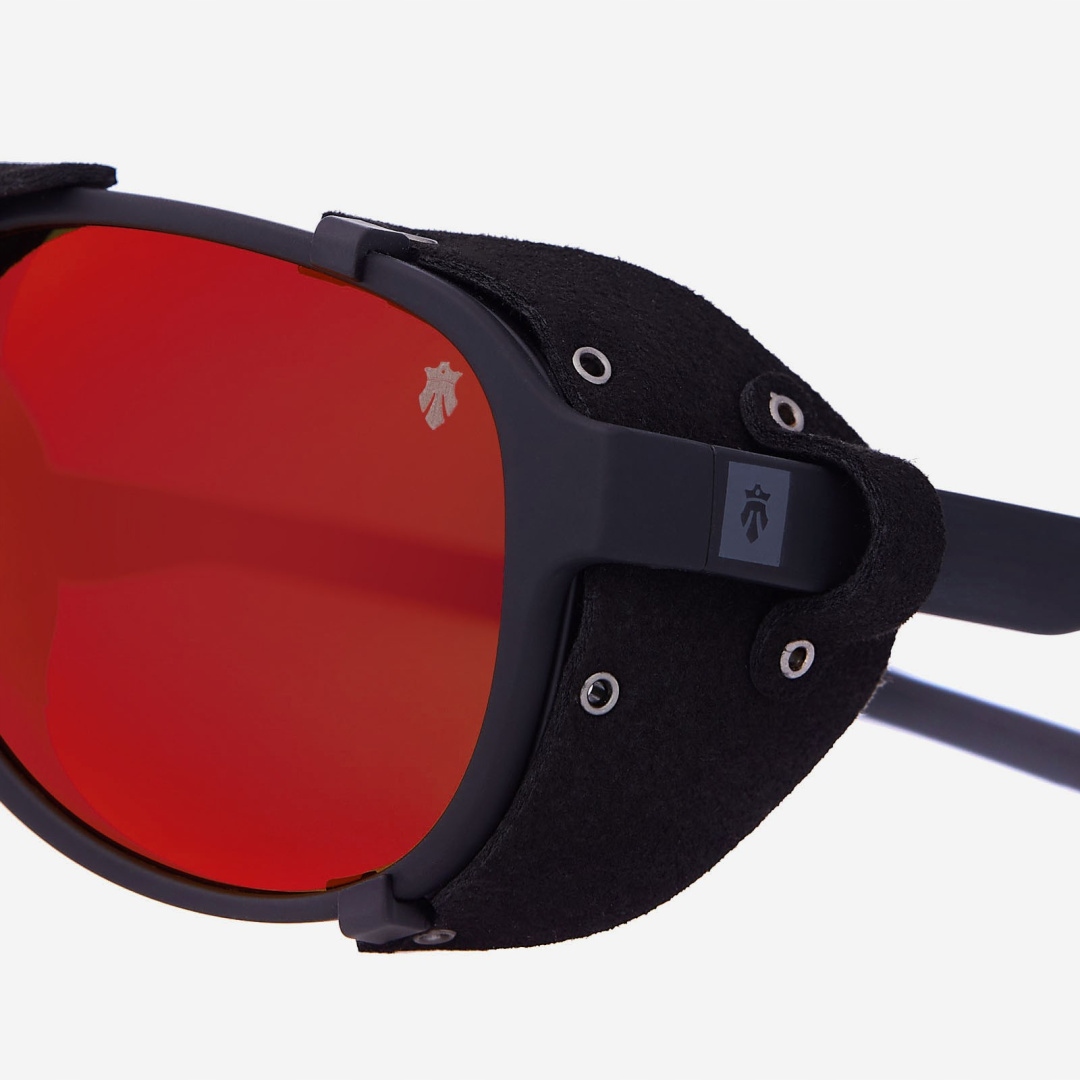 Бічні чохли зі штучної шкіри з антивідблиском ефективно усувають ризик осліпнути боковим світлом. При необхідності їх можна легко зняти, перетворивши окуляри glacier в класичну модель сонцезахисних окулярів. Тверді оправи з високоякісного синтетичного матеріалу покриті протиковзким покриттям, яке значно підвищує комфорт при носінні та запобігає зсуву окулярів під час активності.