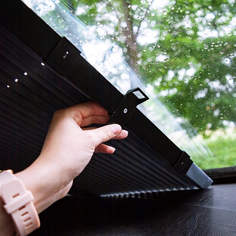 - ЛЕГКЕ ВСТАНОВЛЕННЯ -Щоб закріпити рулонну штору на вікні автомобіля, просто прикріпіть її за допомогою присосок, що входять до комплекту, з одного боку, перетягніть її, а потім прикріпіть подібним чином на інша сторона. Автошторка на вікно розкладається як гармошка. Завдяки цьому він не займає багато місця і його можна возити в машині.