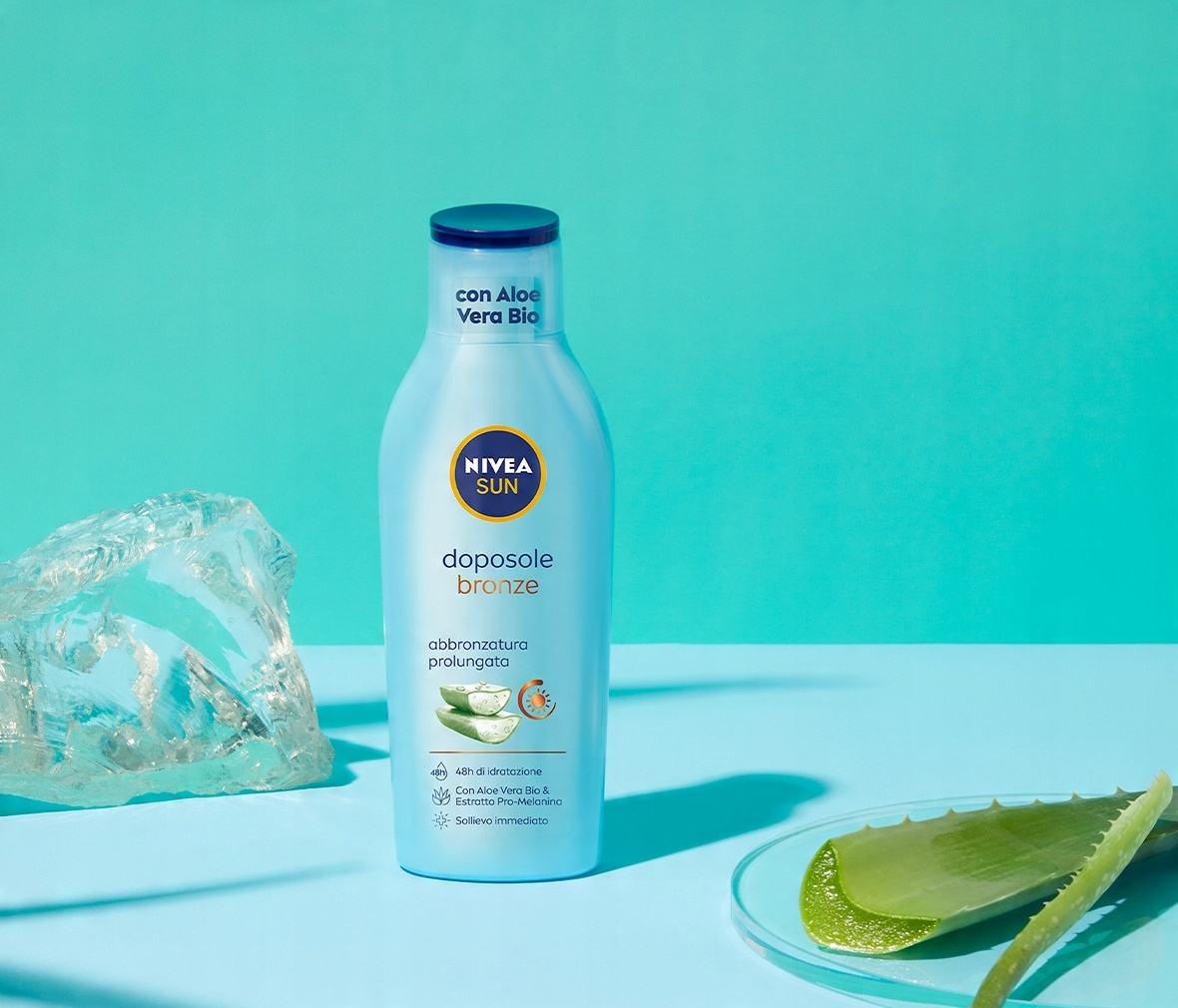 NIVEA SUN After Sun Bronze Бальзам після засмаги, що подовжує засмагу Дбайлива формула завдяки заспокійливій і зволожуючій формулі з біо-алое та екстрактом промеланіну допомагає зберегти тривалу засмагу, забезпечуючи 48-годинне зволоження. Завдяки своїм властивостям робить шкіру гладкою та шовковистою. Крім того, він негайно полегшує подразнену сонцем шкіру. Формула засобу не тільки легка та нежирна, але й миттєво вбирається, не залишаючи відчуття липкості. Переносимість шкірою була дерматологічно підтверджена. ФОРМУЛА НА 100% ВІДПОВІДАЄ УКАЗУ ПРО ЗАХИСТ ГАВАЙСЬКОГО КОРАЛЛОВОГО РИФУ. ПРОДУКТ БЕЗ ОКТОКСИЛАТУ ТА ОКСИБЕНЗОНУ. Збережіть свою засмагу довше! Відкрийте для себе бальзам для подовження засмаги від NIVEA, який підтримує природний процес засмаги та подовжує його ефект. Довіртеся якості NIVEA SUN!