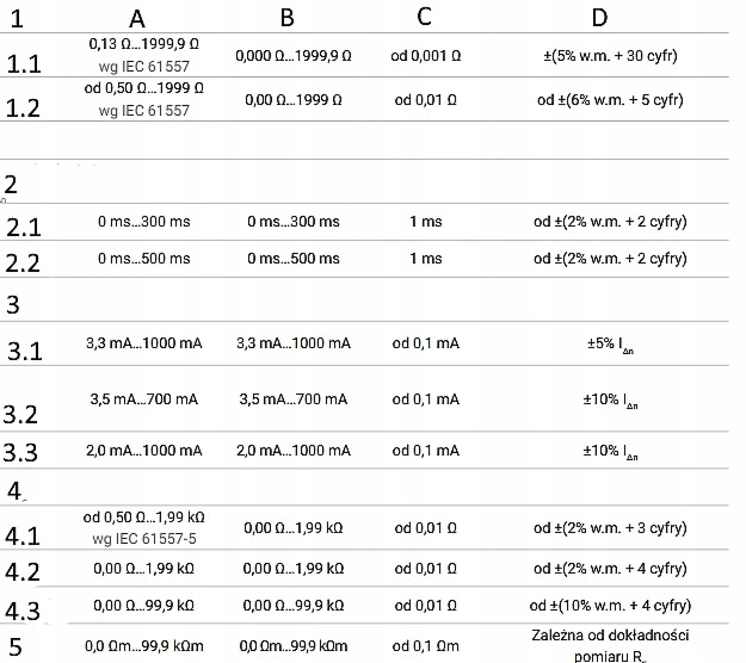 - Категорія вимірювання відповідно до PN-EN 61010: IV 300 V, III 500 V